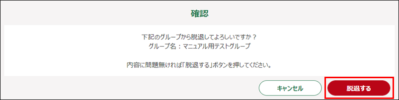 5.以下の確認メッセージが表示されます。内容を確認のうえ、「脱退する」ボタンをクリックします。