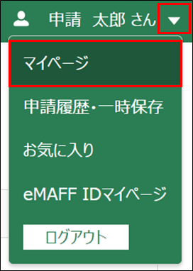 1.画面右上の「▼」ボタンをクリックし、表示された一覧から「マイページ」をクリックします。