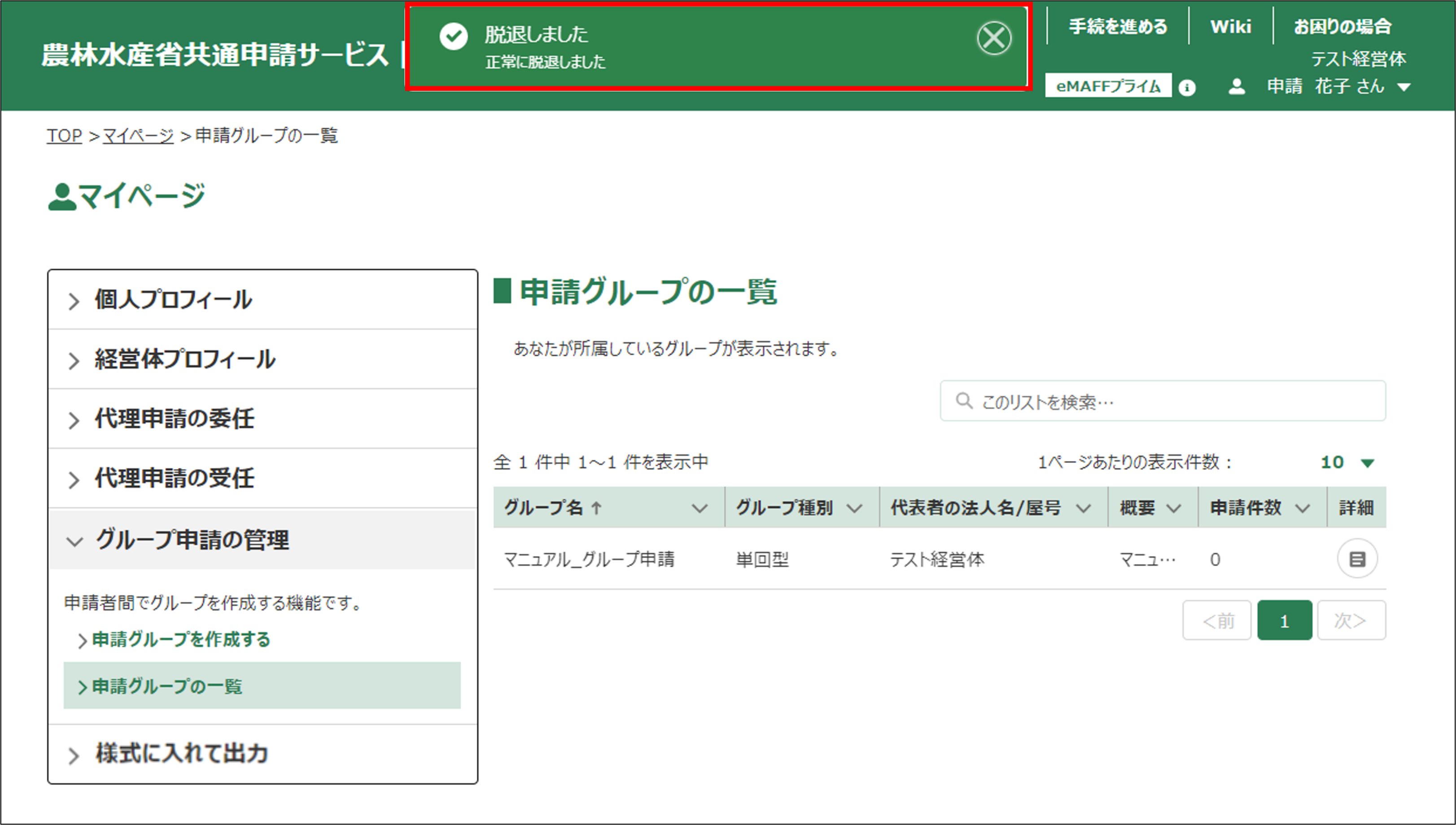 グループ参加中に審査が完了した申請は、脱退後も閲覧できます。