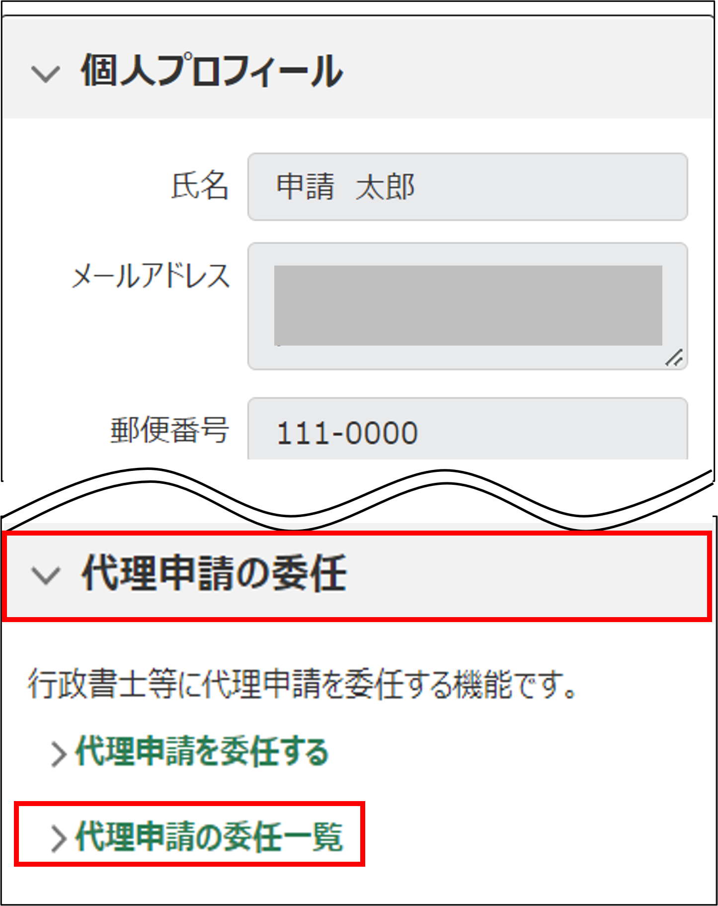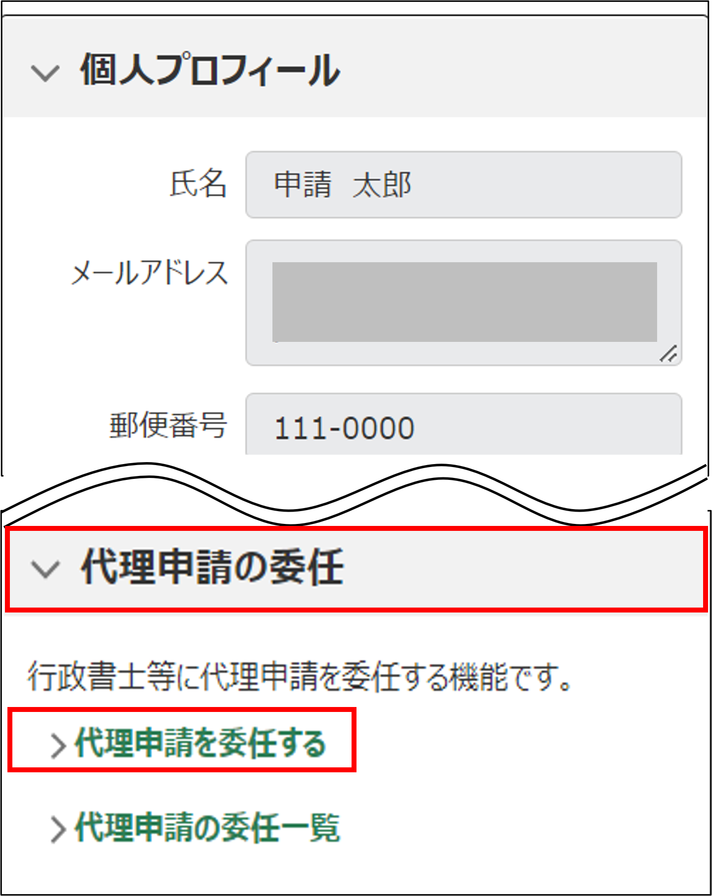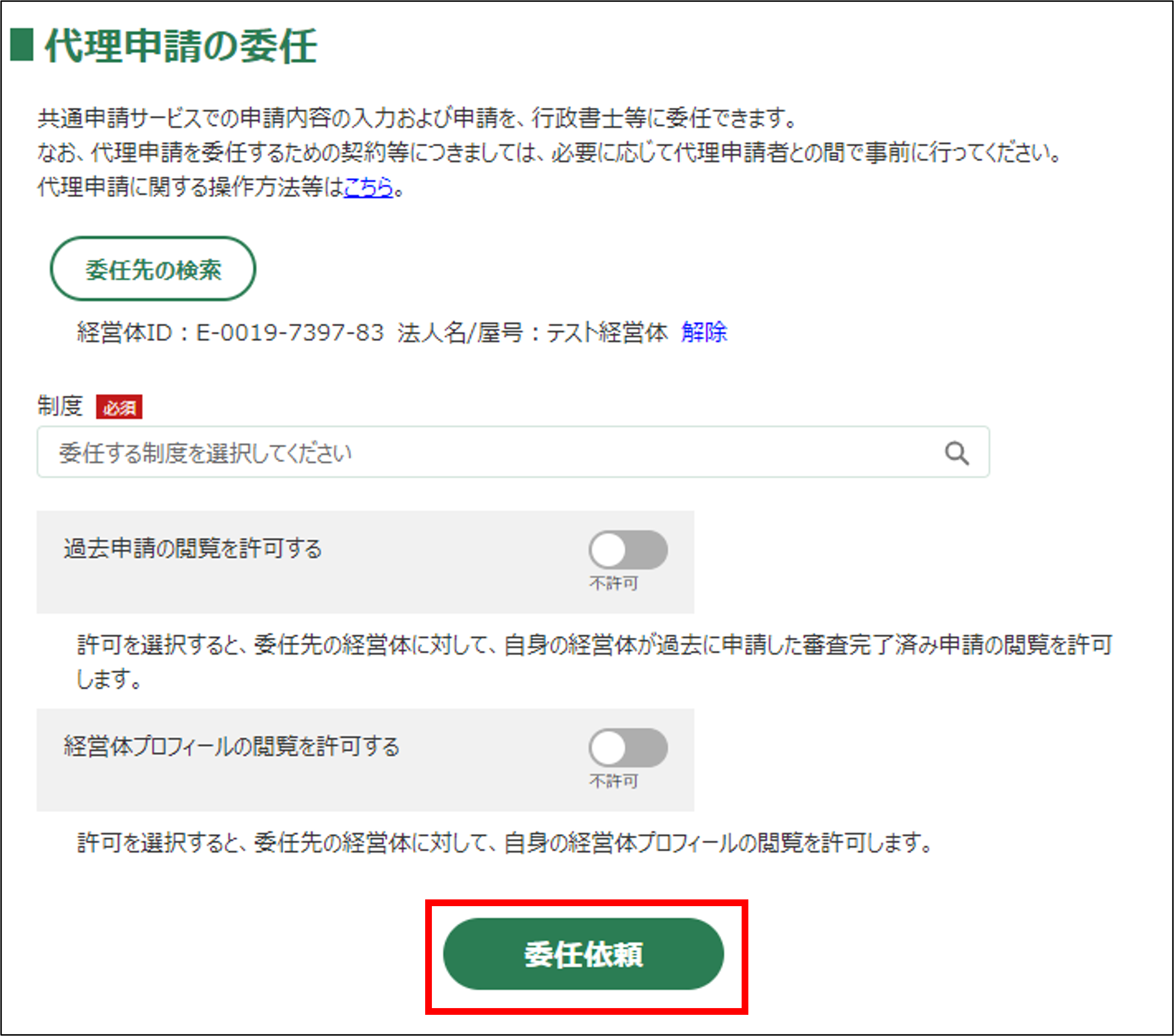 「申請代行者」に対して、申請を委任する手順を記載します。