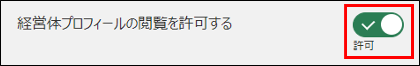 9.「経営体プロフィールの閲覧を許可する」を許可にすると、経営体プロフィールの内容を申請代行者に公開できます。