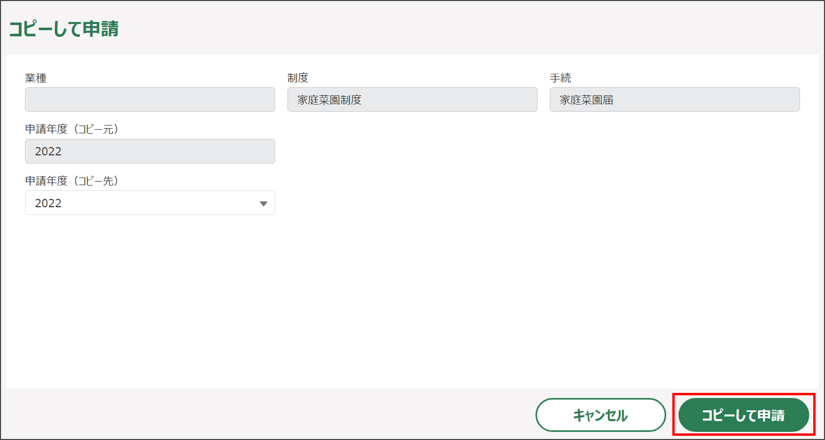 8.画面右下の「コピーして申請」ボタンをクリックします。