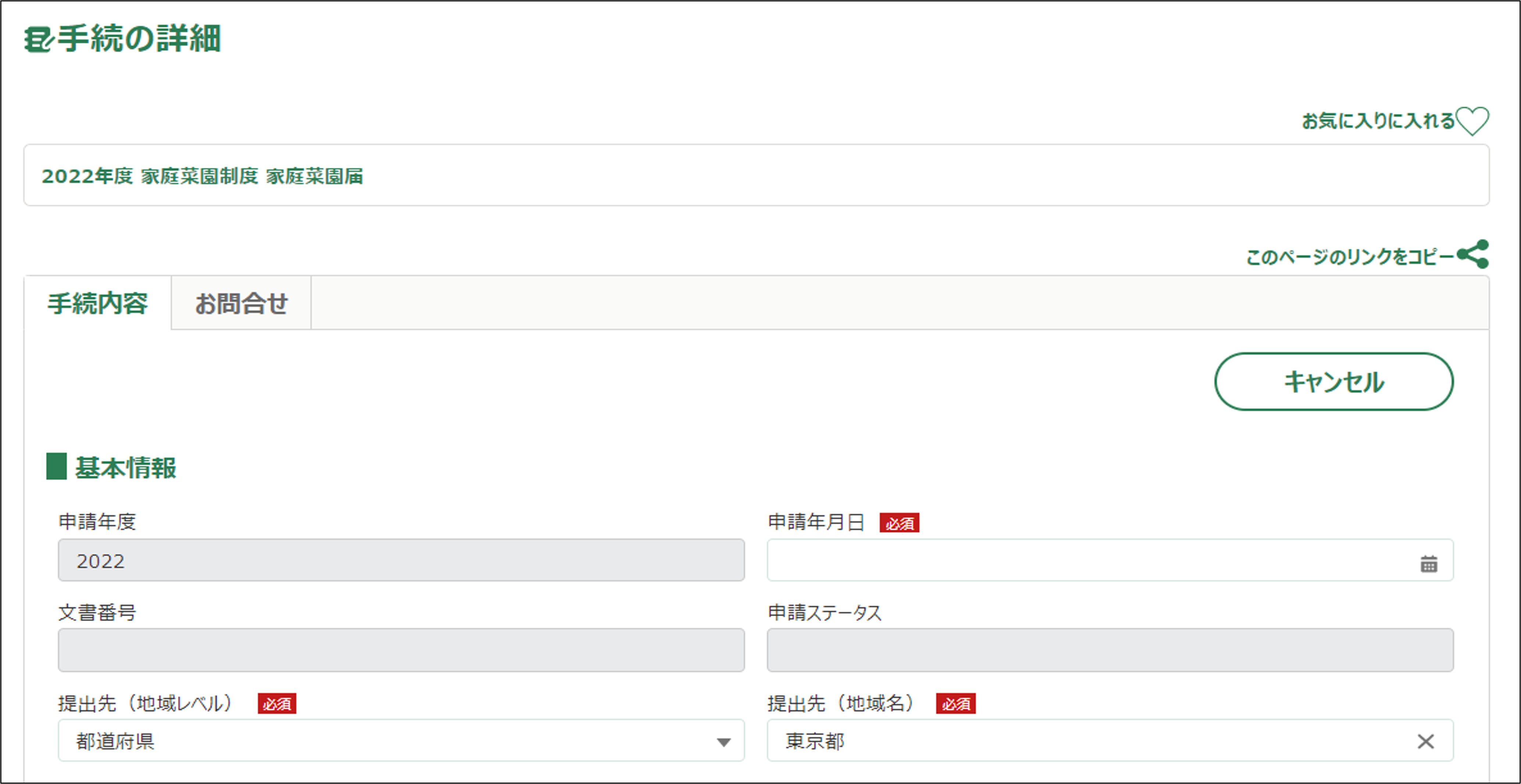 9.コピー元の情報が入力された状態の「手続の詳細」画面が表示されます。