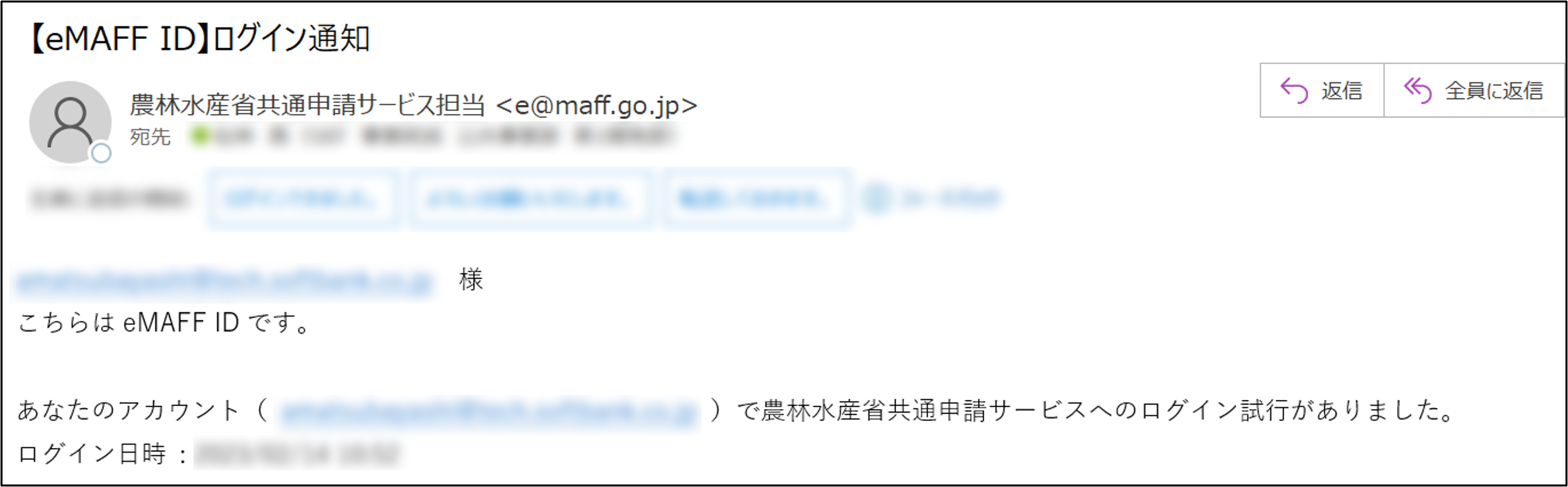 3.ログイン操作を行うと「【eMAFF ID】ログイン通知」というメールが届きますが、操作は不要です。