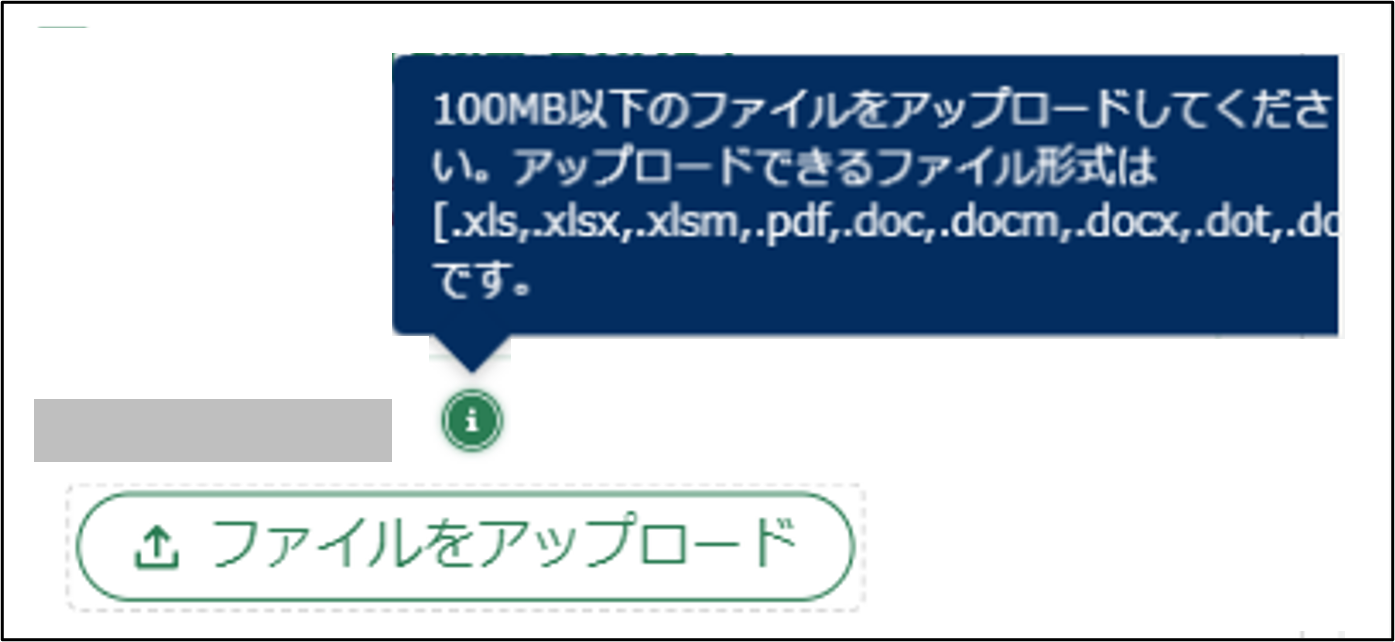 項目名の右側にある「」にカーソルを合わせると、アップロードできるファイルサイズ、形式等が表示されます。
