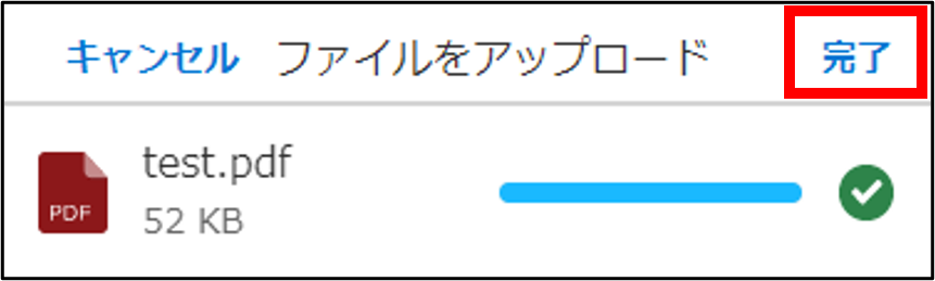 3.「ファイルをアップロード」画面が開きます。「」を確認し、「完了」をタップします。