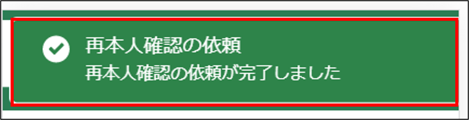 画面上部に「再本人確認の依頼が完了しました」と表示されます。