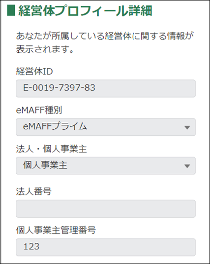 4.「経営体プロフィール詳細」画面が表示されます。
