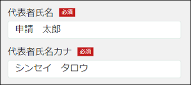 8.「代表者氏名」「代表者氏名カナ」を確認します。変更する場合は直接入力します。