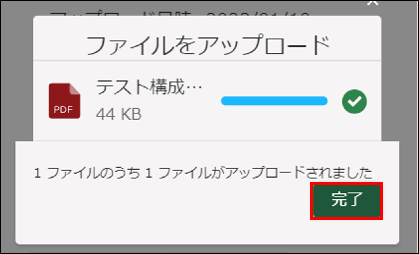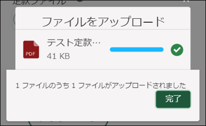 3.「ファイルをアップロード」画面が表示されます。「XファイルのうちXファイルがアップロードされました」を確認し、「完了」ボタンをタップします。