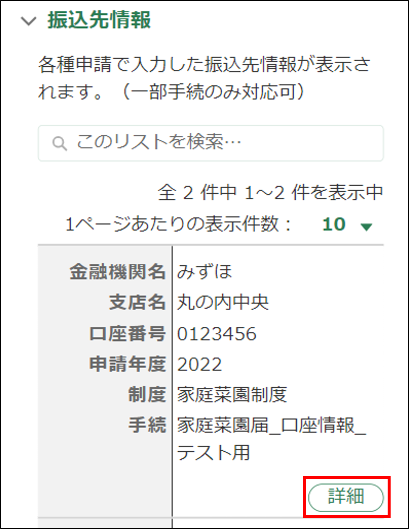2.「振込先情報」欄を確認します。