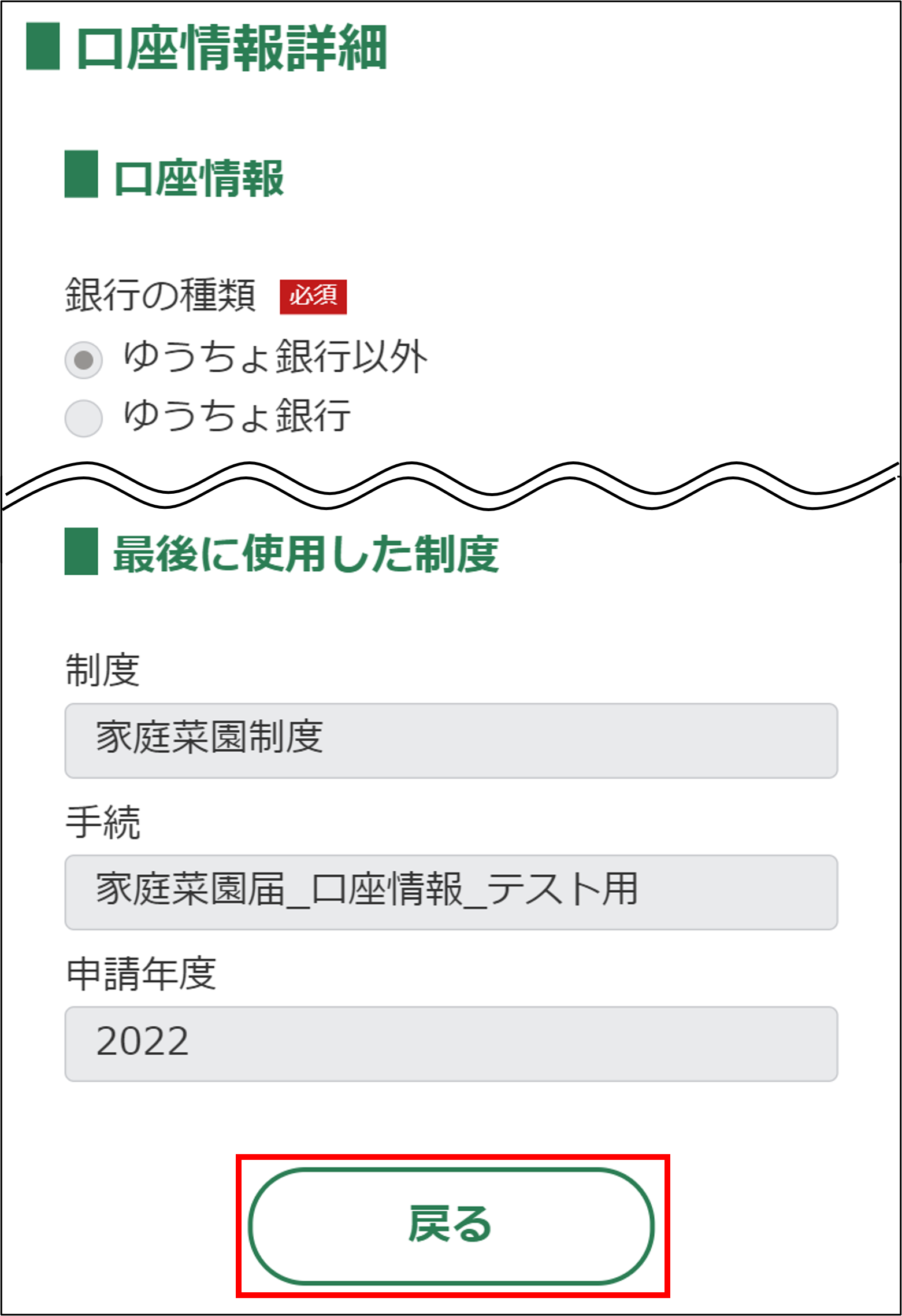 交付金等の振込先となる各金融機関及びゆうちょ銀行の情報です。口座情報の申請が完了している場合、情報が表示されます。