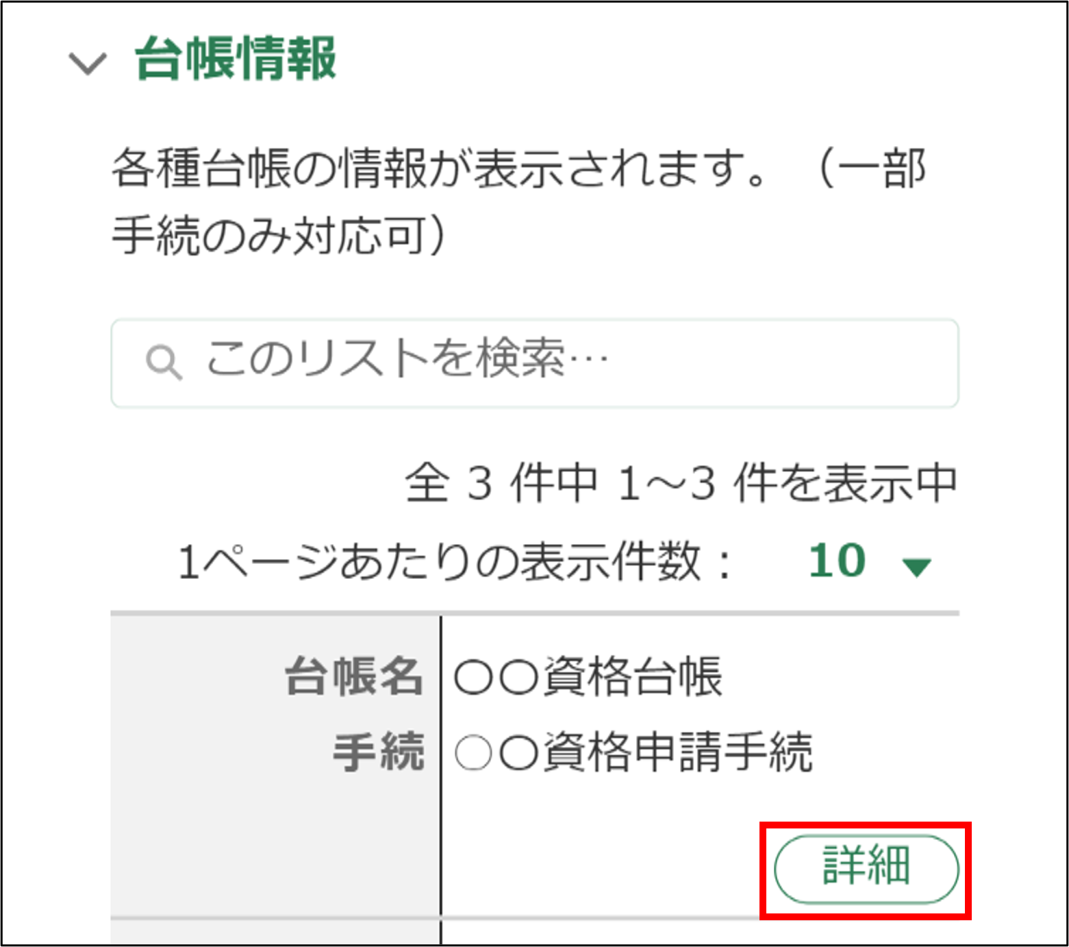 ※台帳情報の内容を変更することはできません。