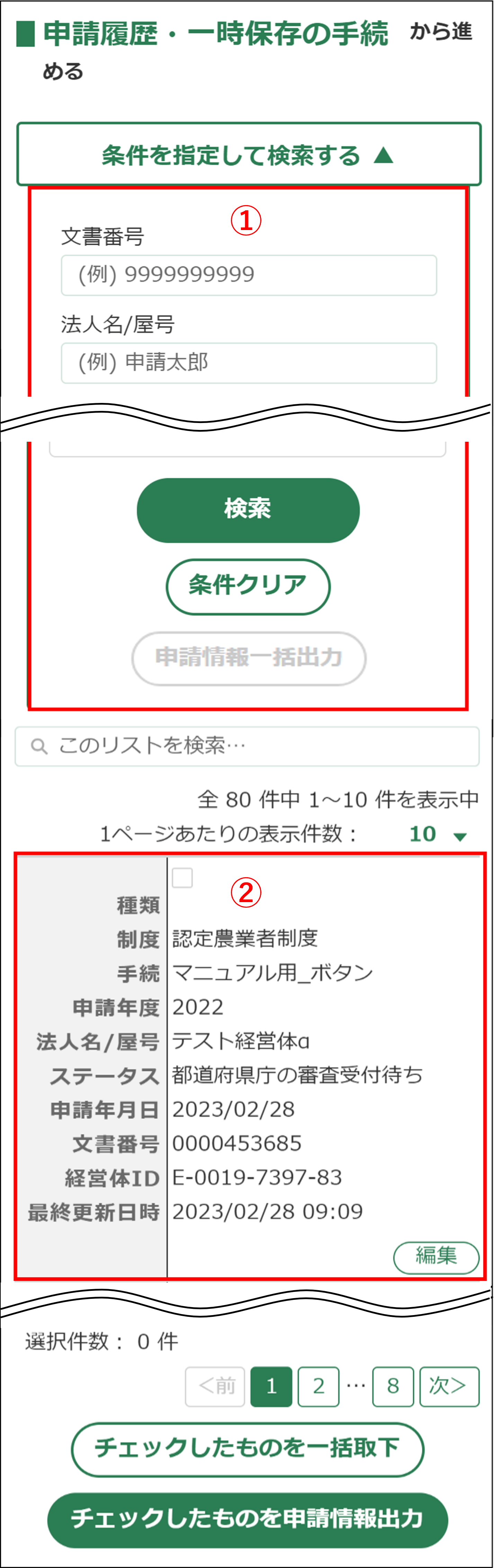 検索条件を指定して、ページ下部に表示される検索結果の絞り込みを行います。