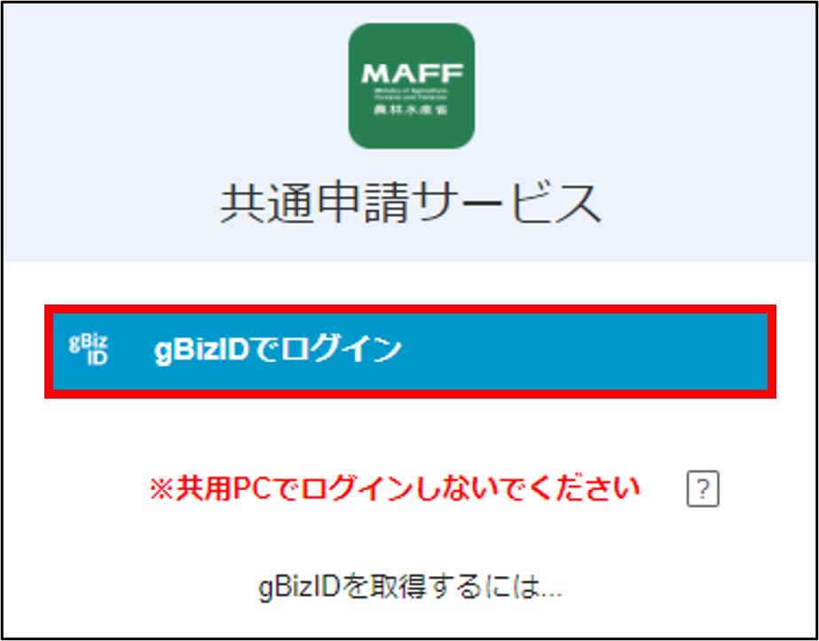 gBizIDを使用して共通申請サービスにログインする手順を記載します。