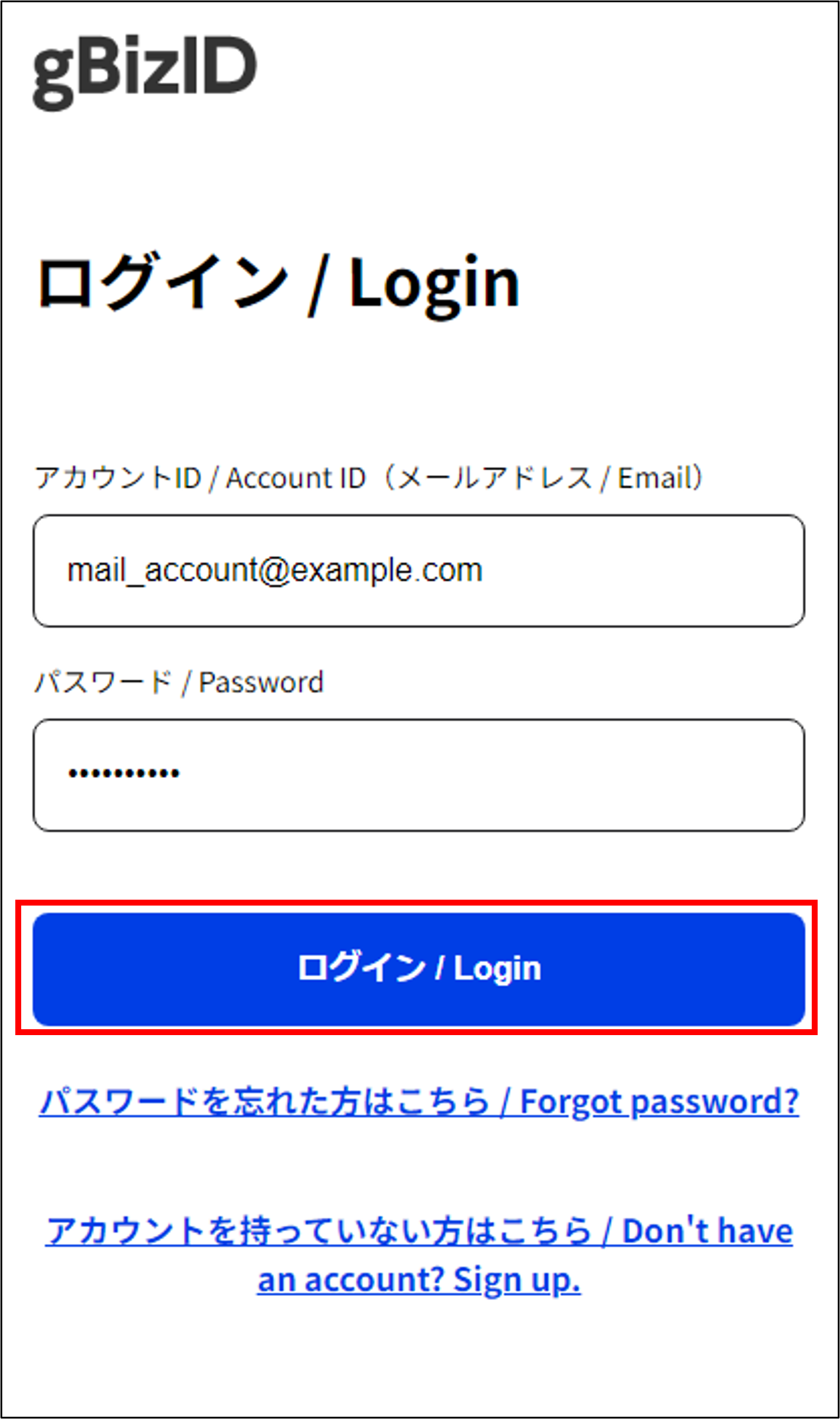 5.「アカウントID」にgBizID(登録メールアドレス)を入力します。