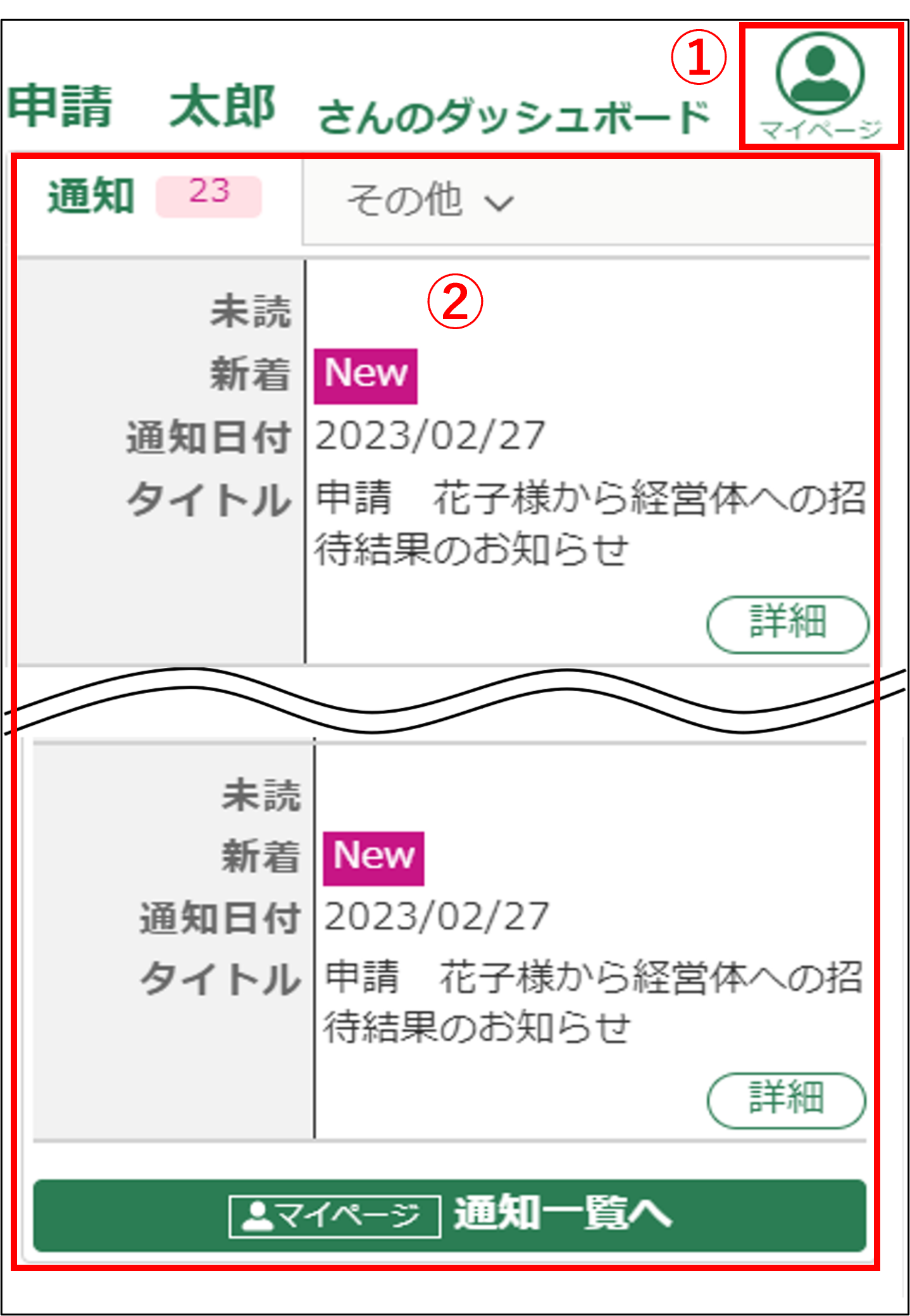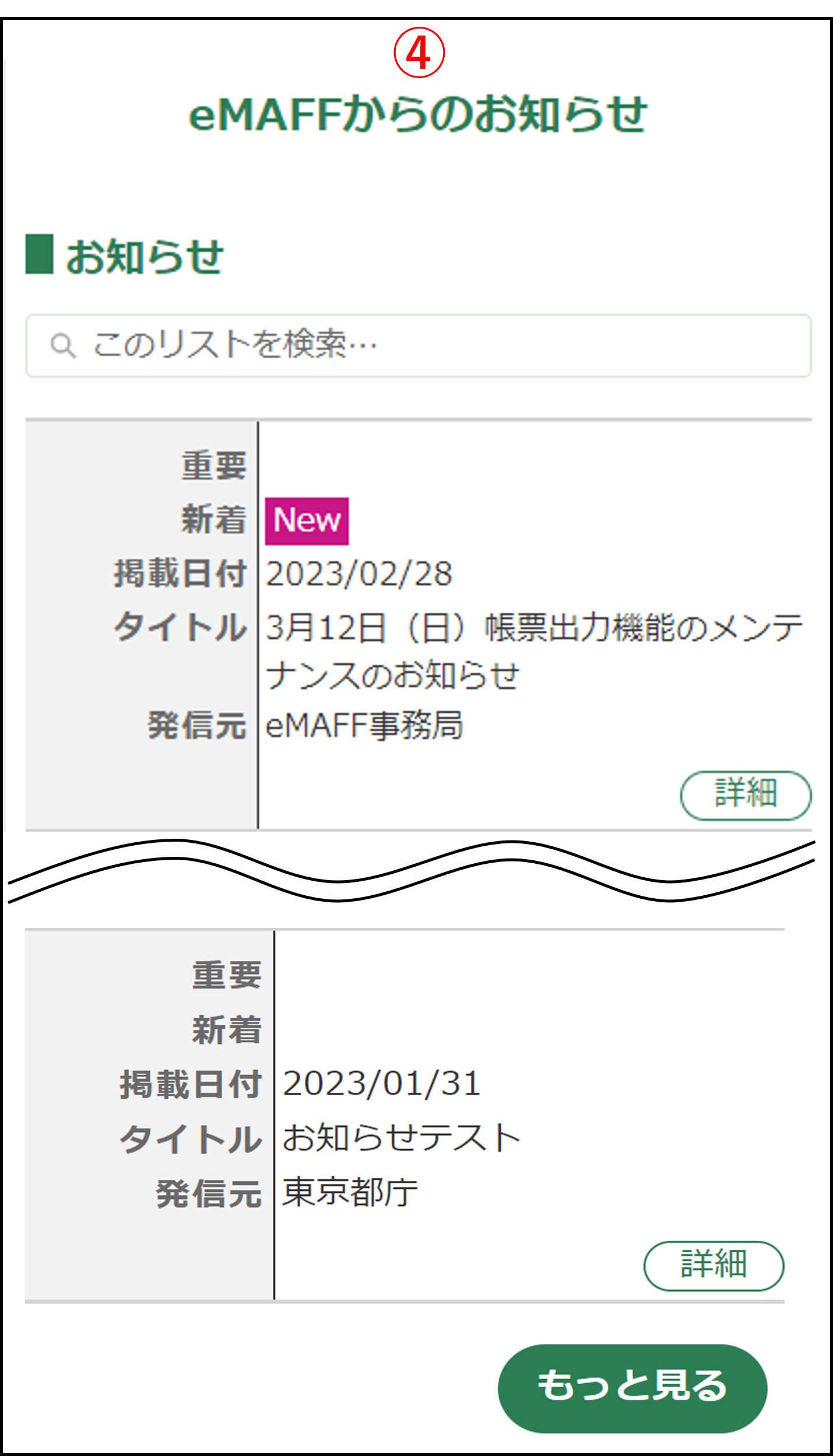全件を確認したい場合は、それぞれの「〇〇一覧へ」ボタンをタップします。