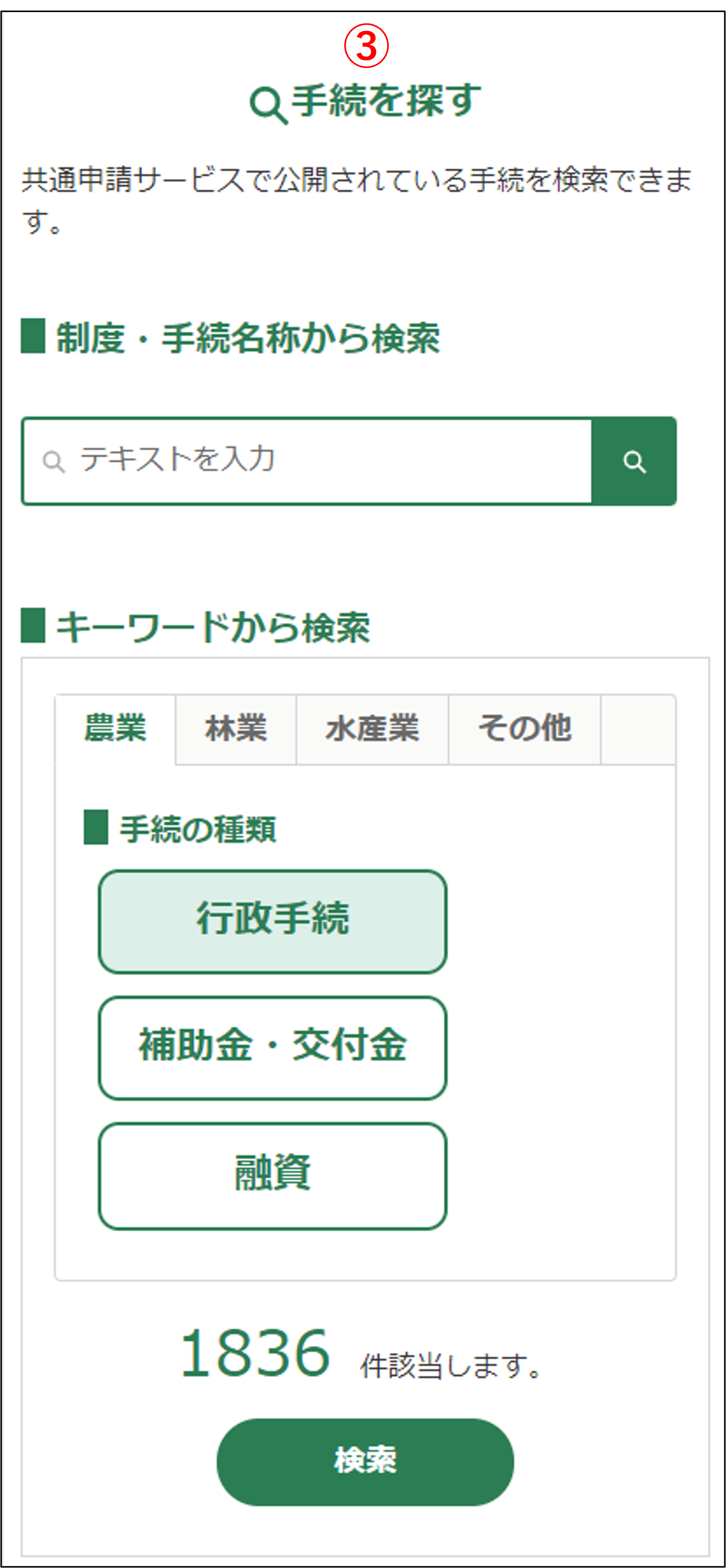 手続を探す 「制度・手続名称から検索」又は「キーワードから検索」で手続を検索できます。