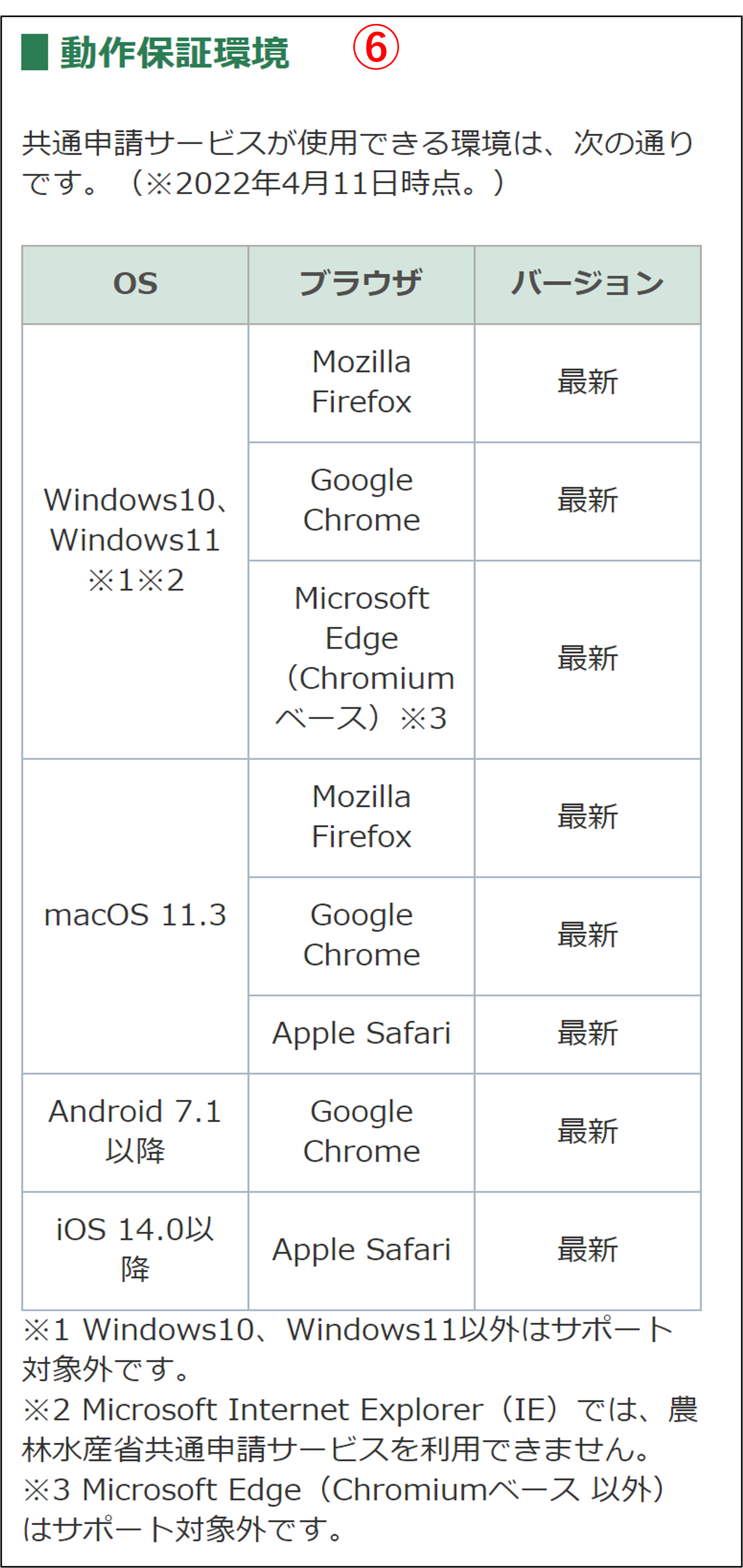 動作保証環境 共通申請サービスを使用できる環境を表示します。