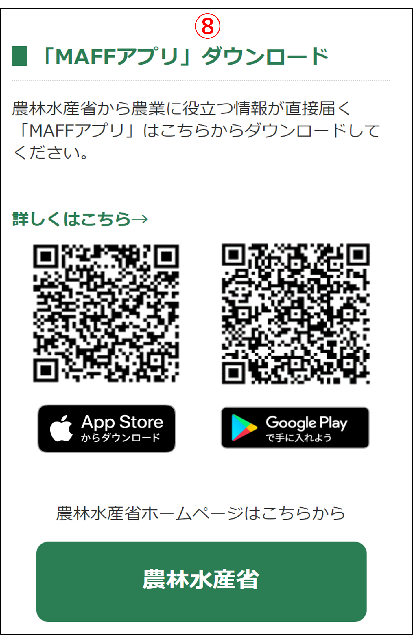 「MAFFアプリ」ダウンロード 「MAFF アプリ」ダウンロードのご案内を表示します。