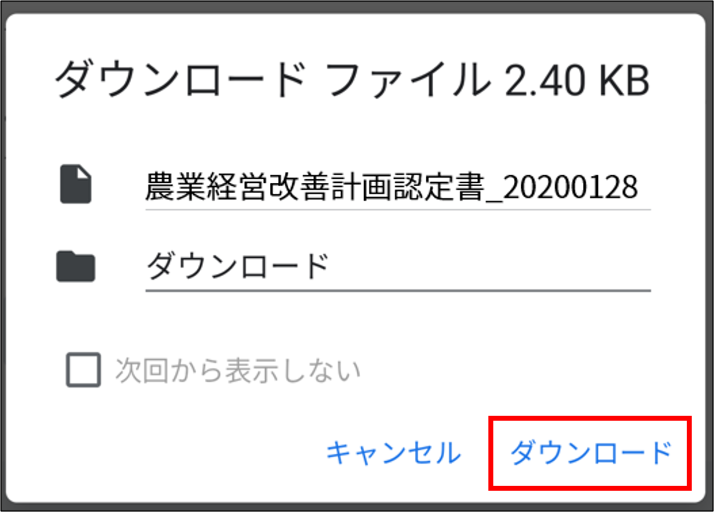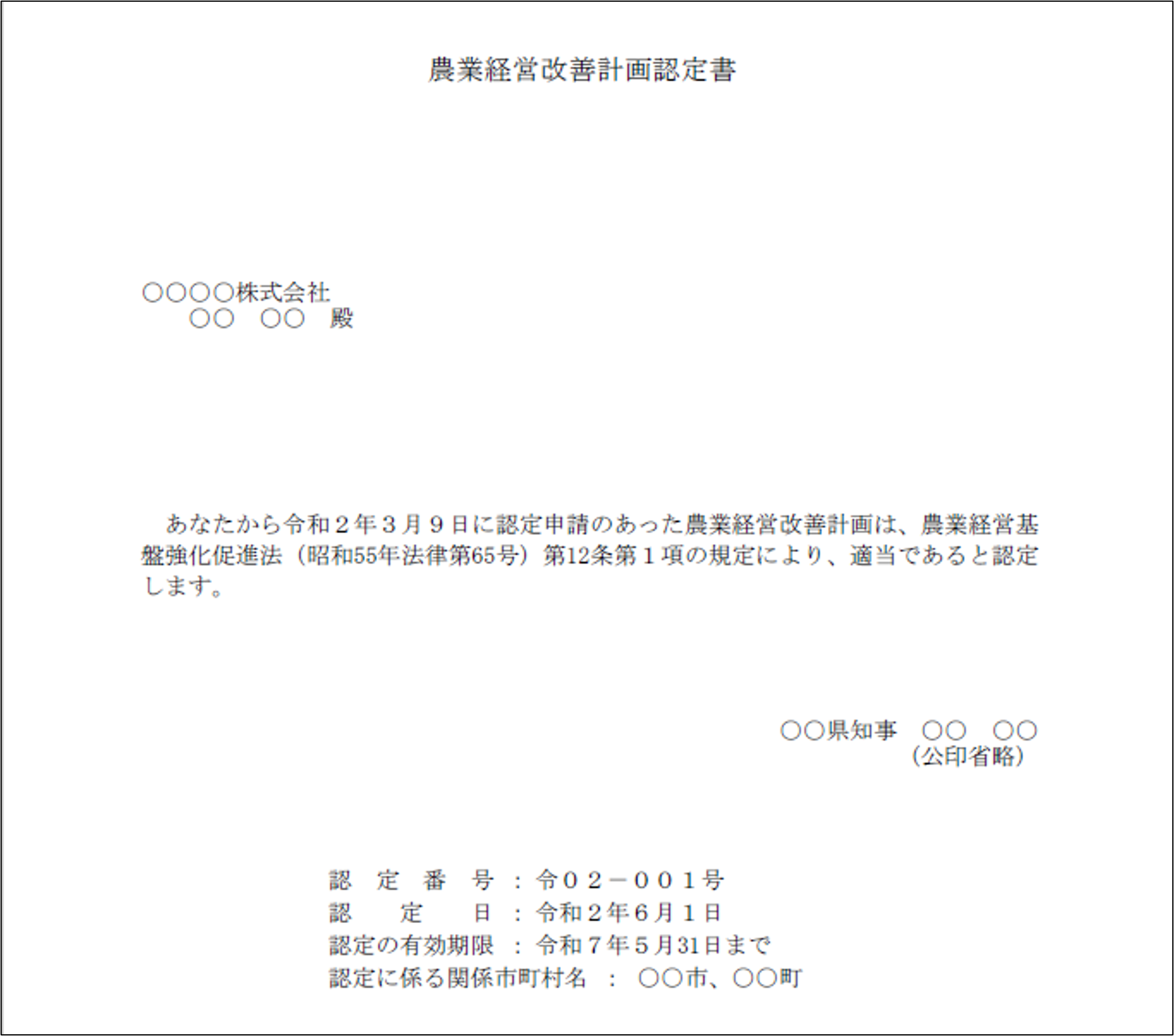 認定庁から電子的に交付された「農業経営改善計画認定書」をPDFファイルで出力します。