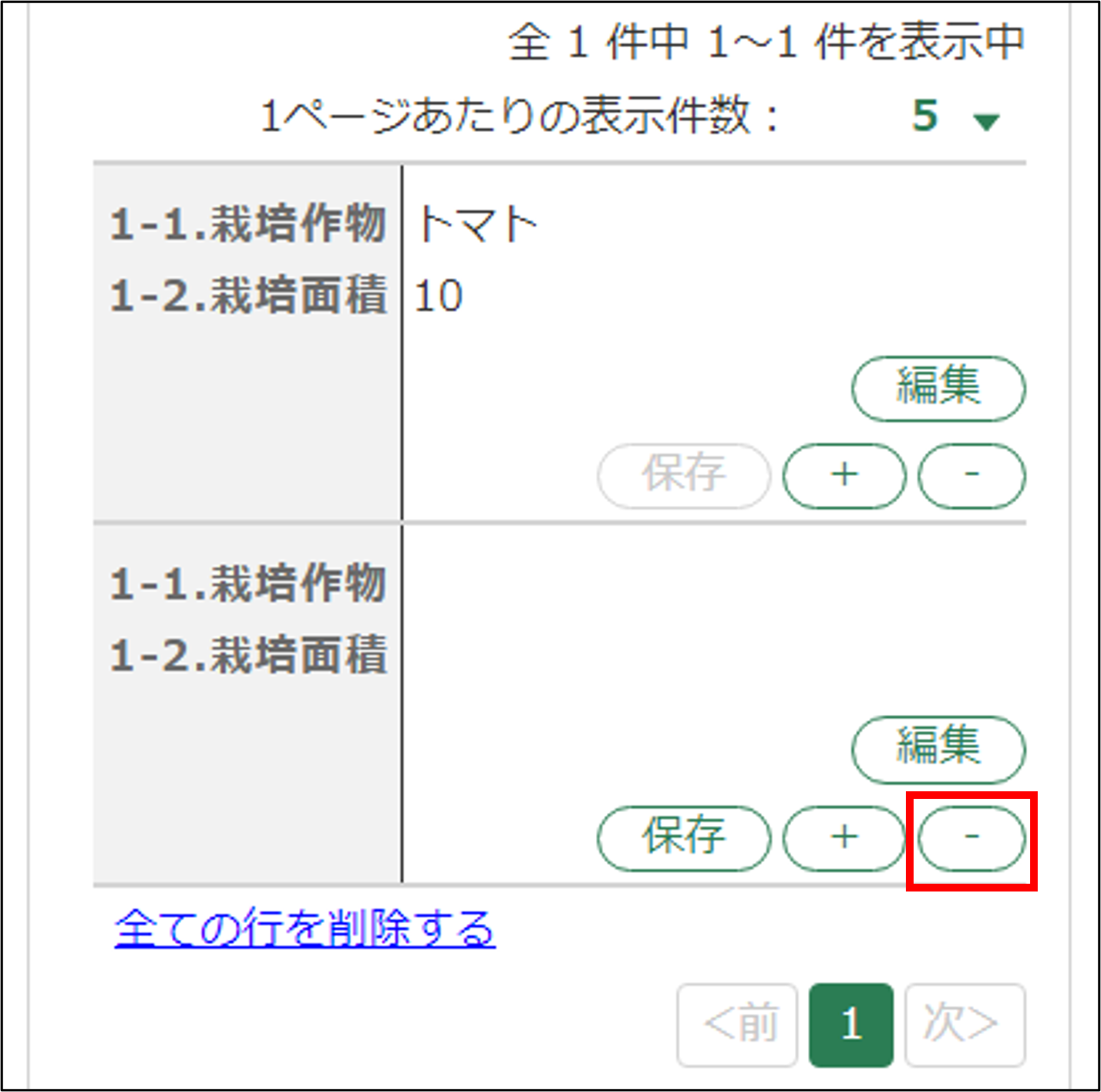 1.追加した行を削除する場合は、「」ボタンをタップします。