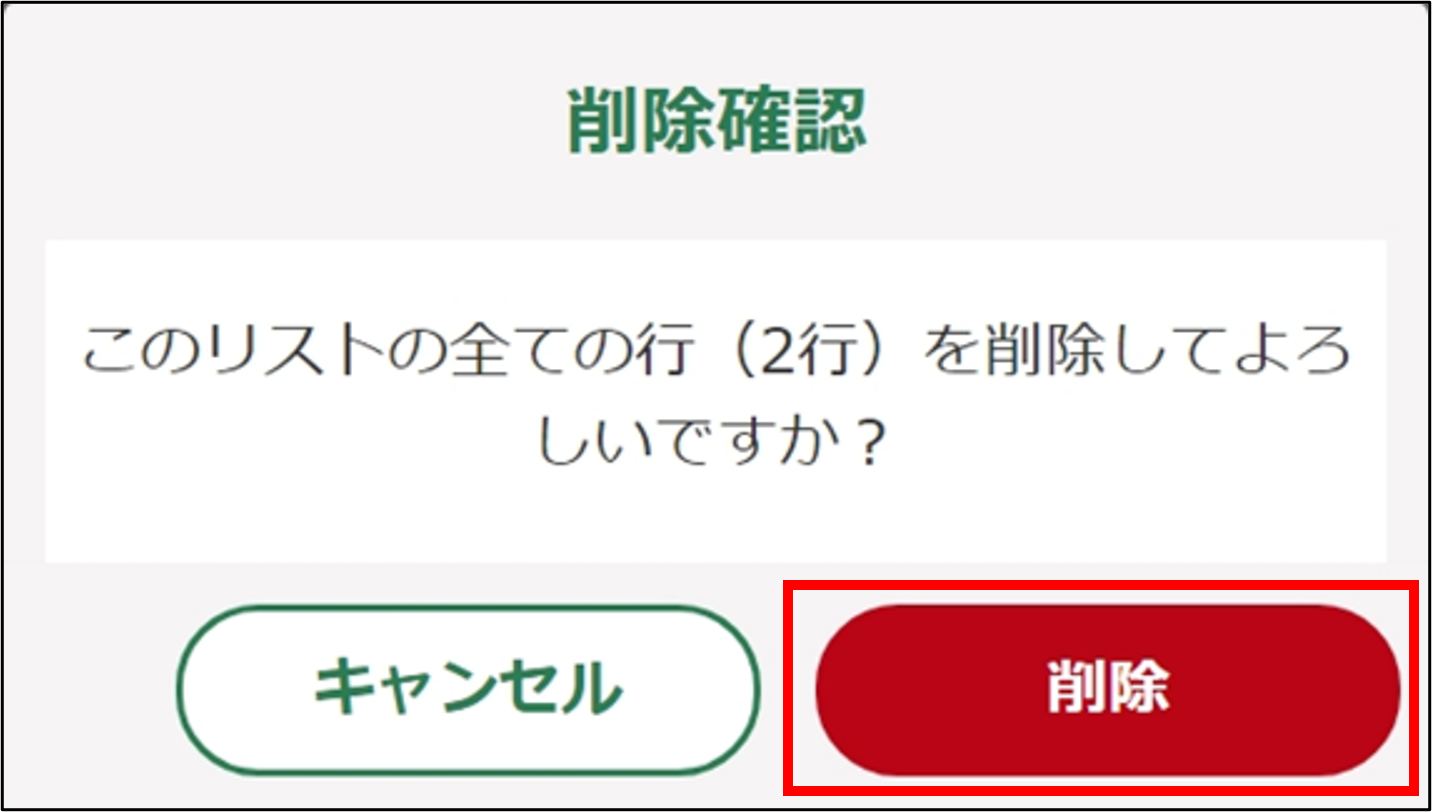 3.入力欄の内容をすべて削除する場合は、画面左下の「全ての行を削除する」をクリックします。