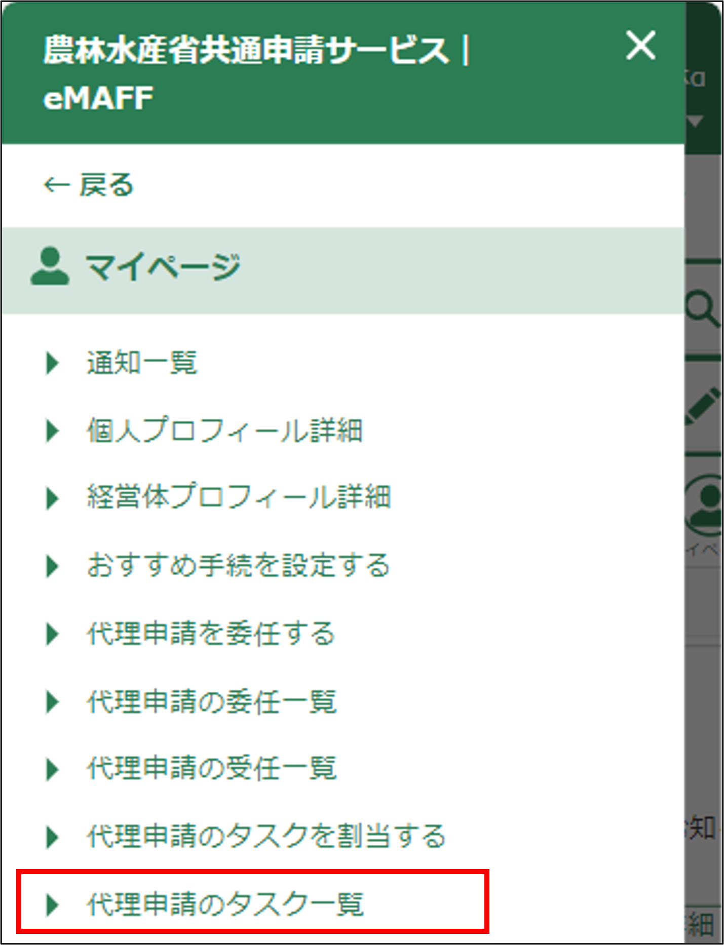 3.表示された一覧から「代理申請のタスク一覧」をタップします。