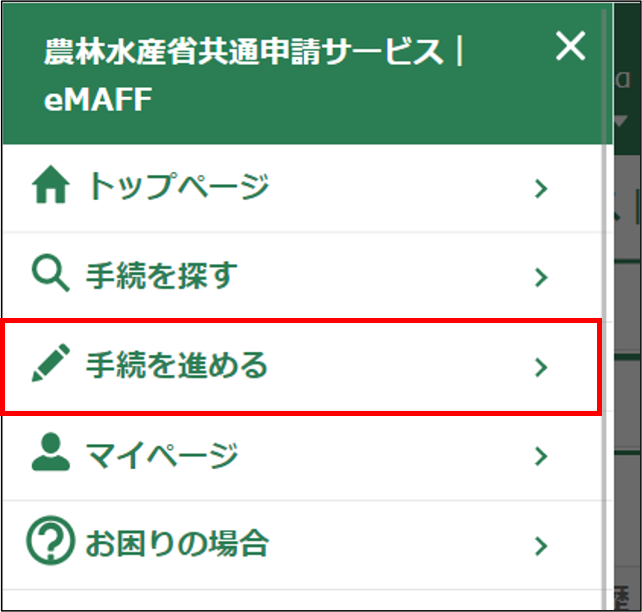 3.表示された一覧から「申請履歴・一時保存の手続から進める」をタップします。