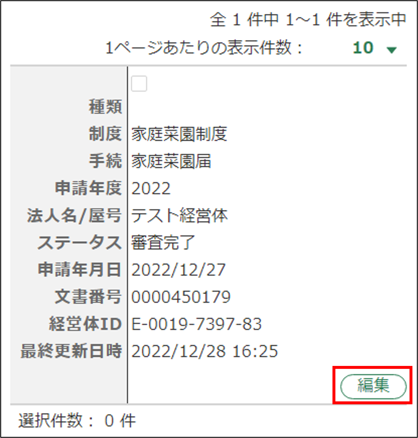 5.検索結果から、印刷したい申請の右側にある「編集」ボタンをタップします。
