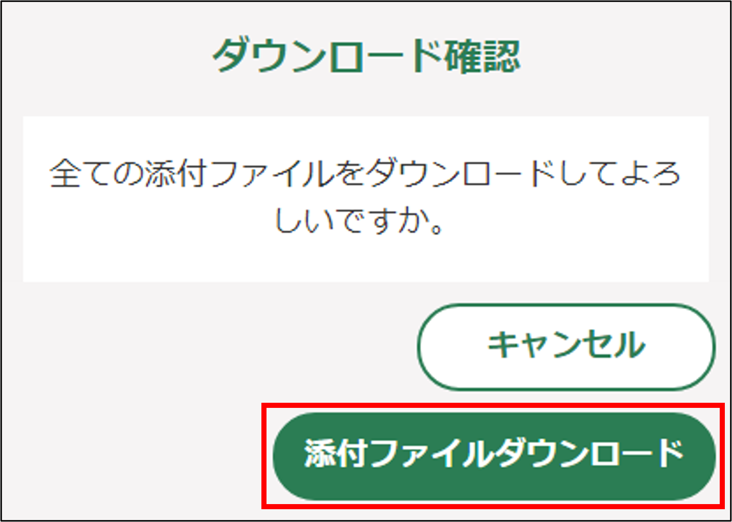 7.「ダウンロード確認」画面が表示されます。「添付ファイルダウンロード」ボタンをタップします。