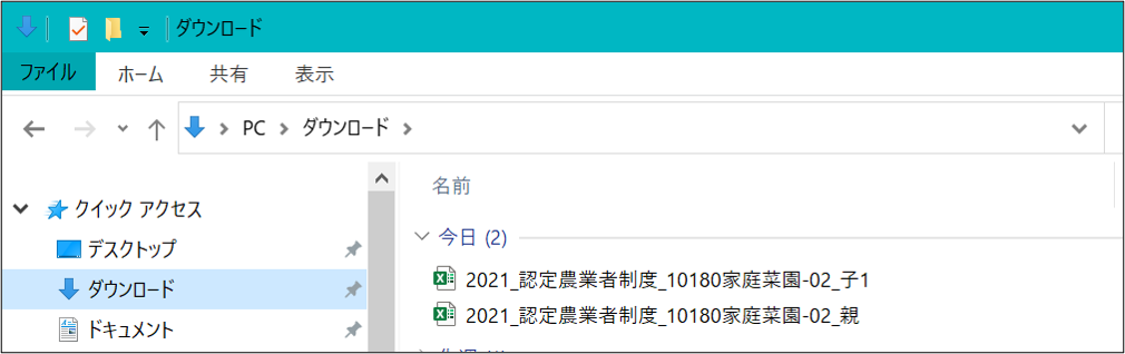 2.ダウンロードフォルダに申請データが保存されていることを確認します。