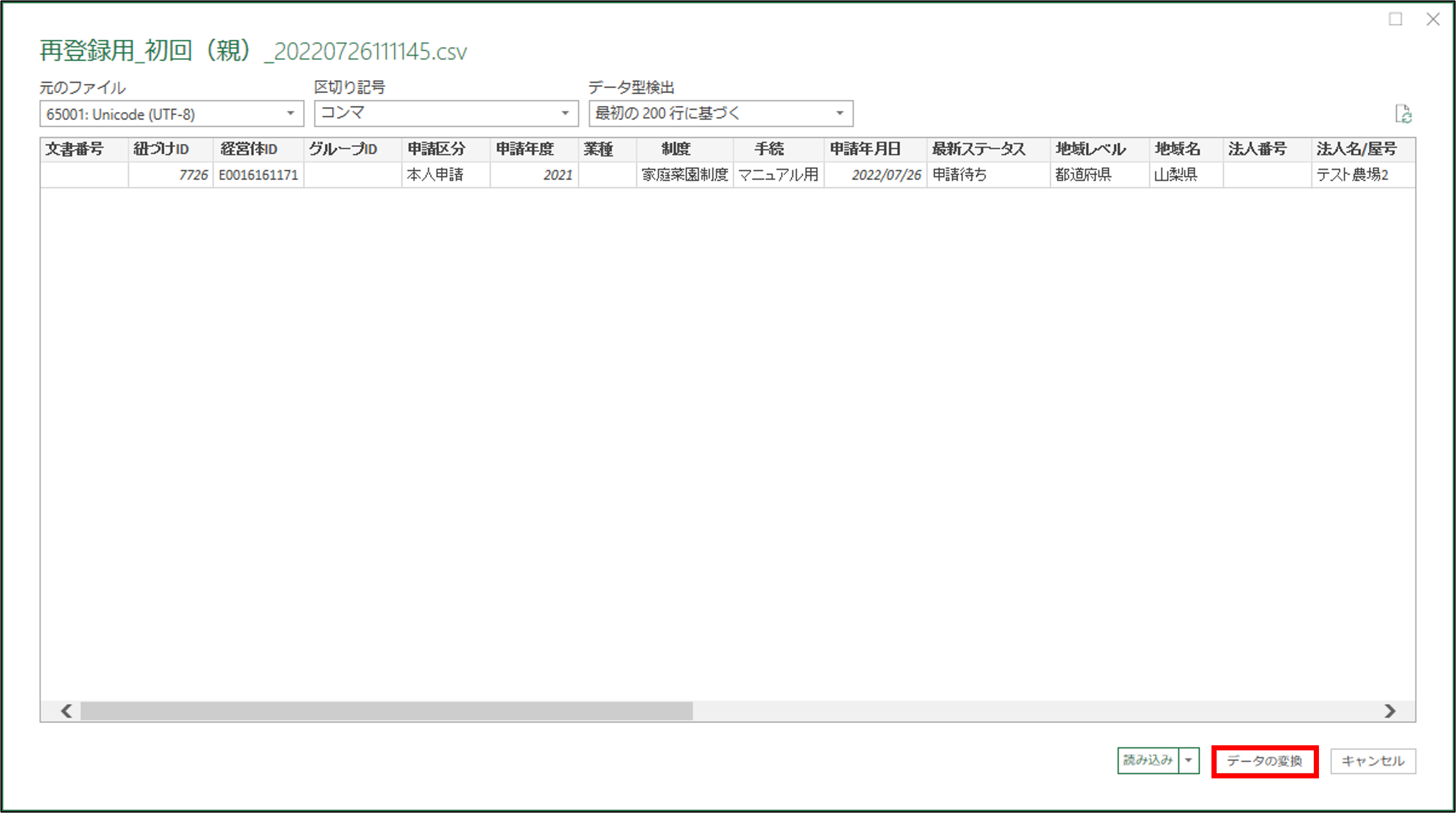 3.「データの変換」をクリックします。