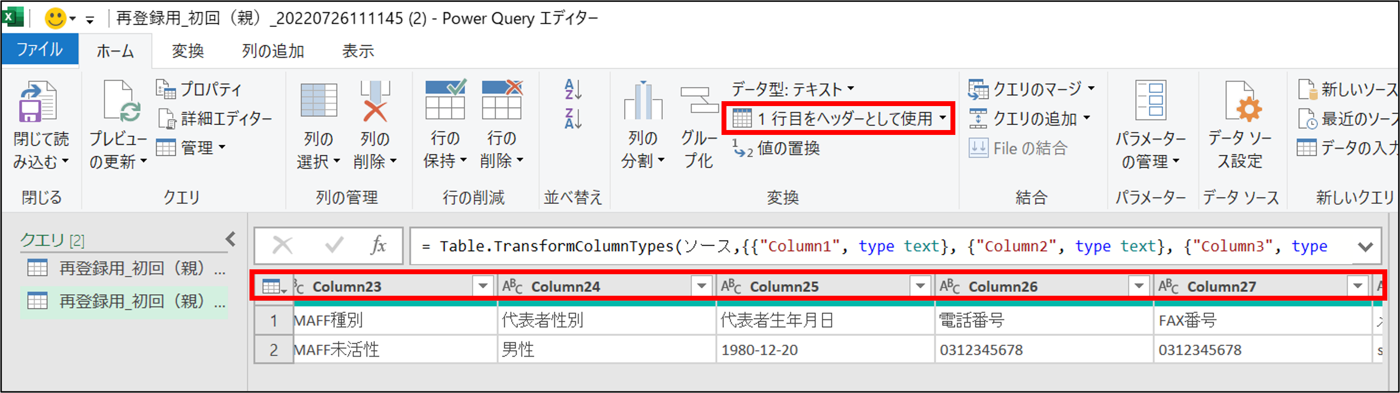 4.Power Queryエディターが開きます。