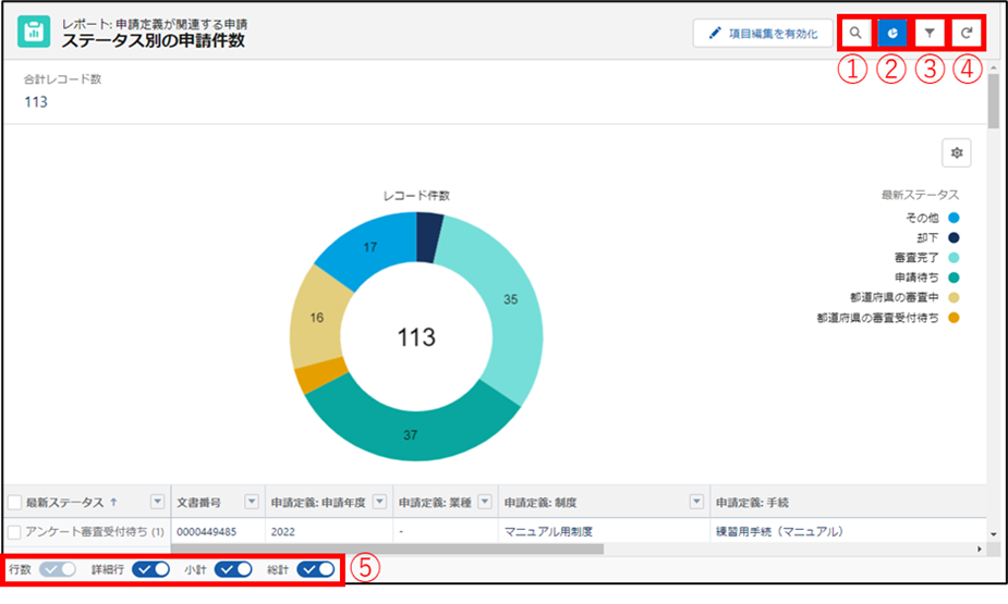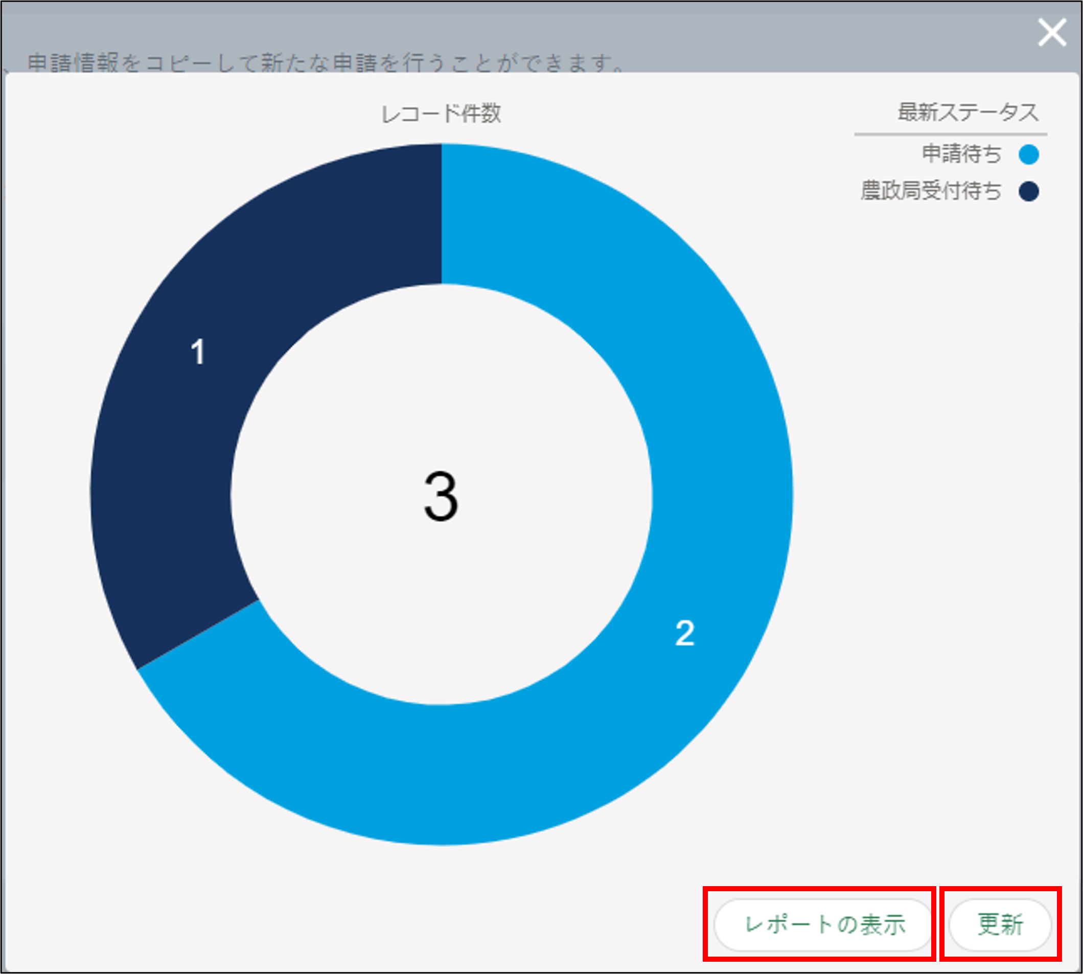 最新ステータスごとに、申請情報の件数を集計します。 |