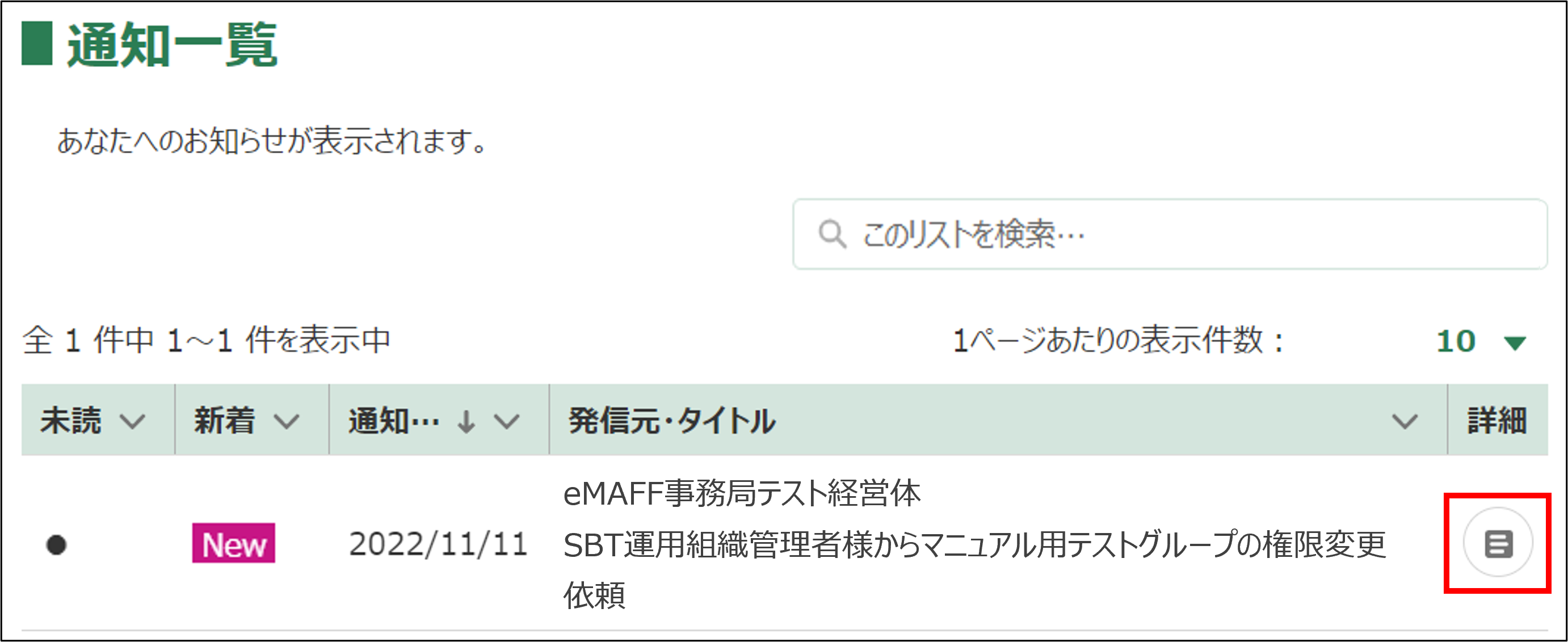 通知一覧から「権限変更依頼」の「」ボタンをクリックします。