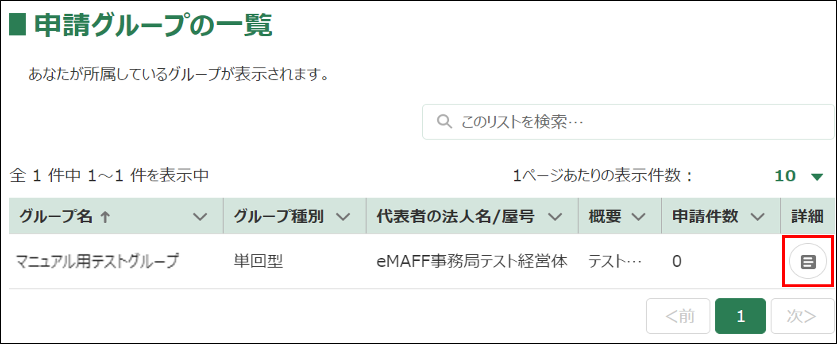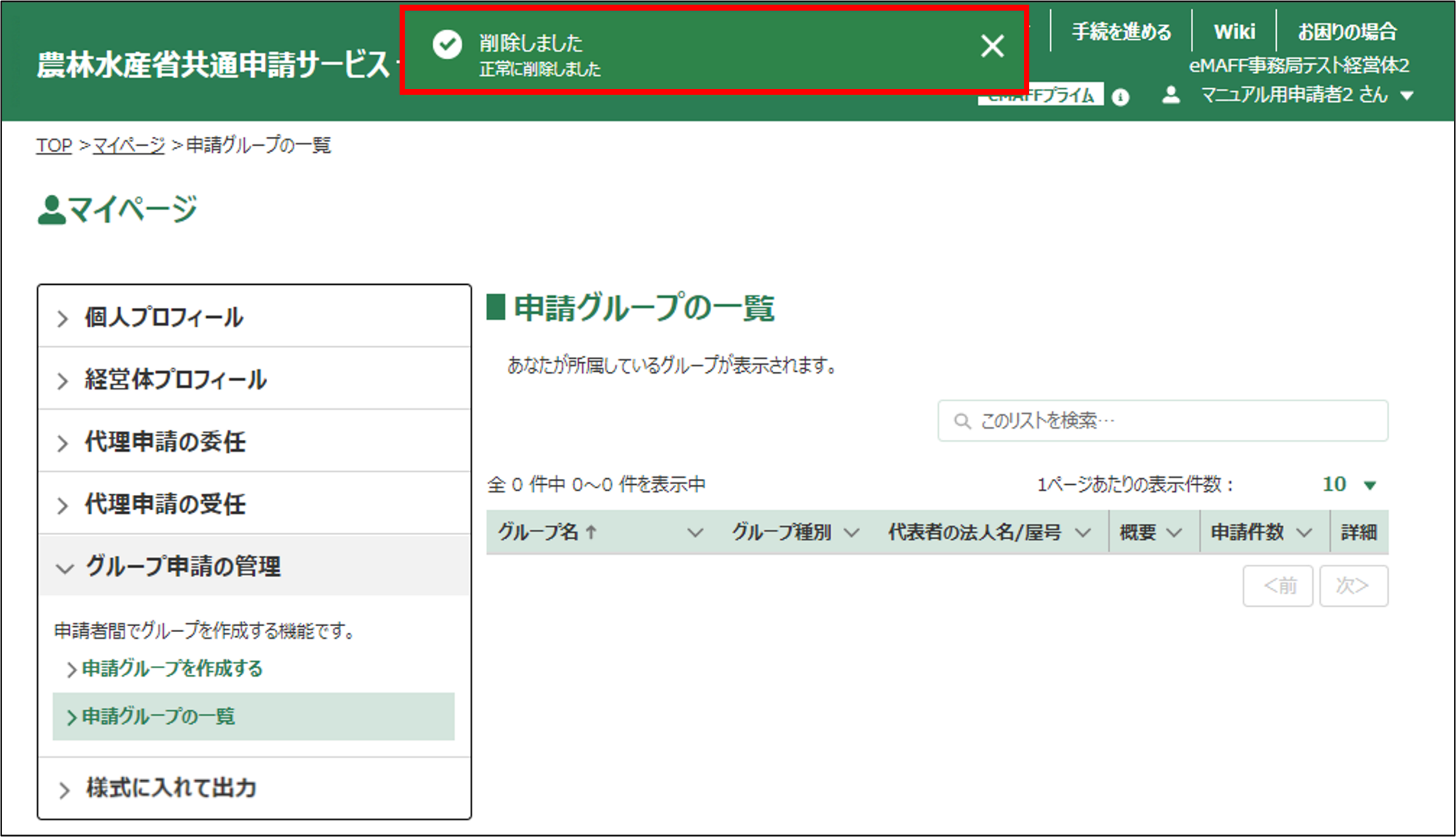 ※すでにグループによる申請が行われている場合は、エラーメッセージが表示されます。