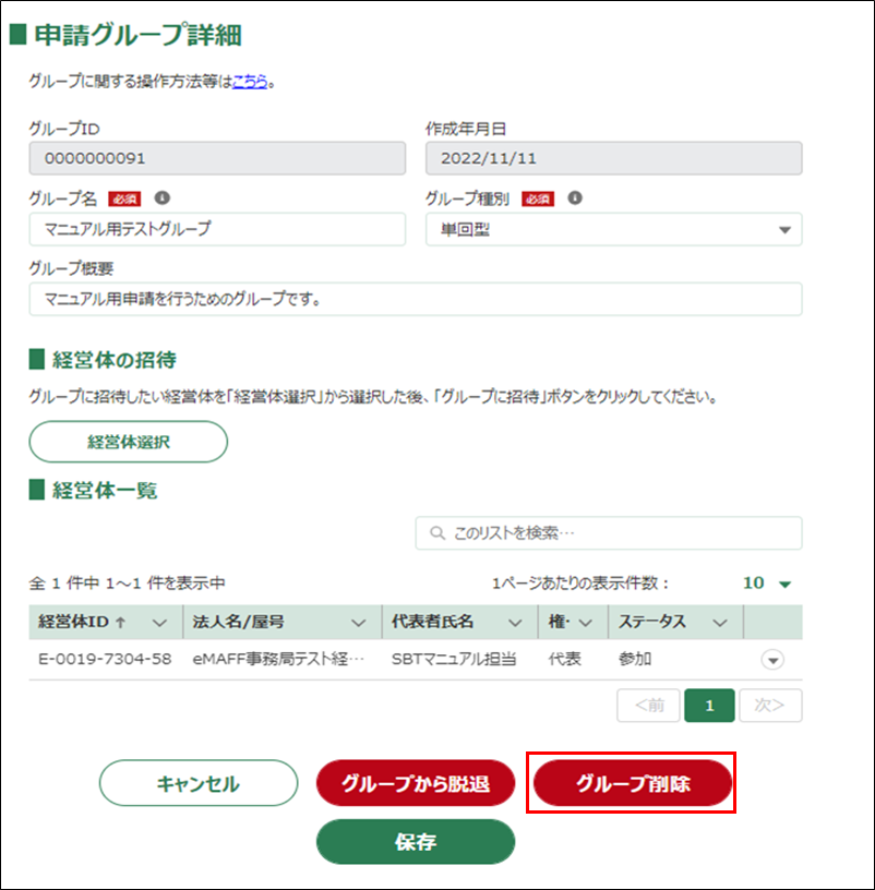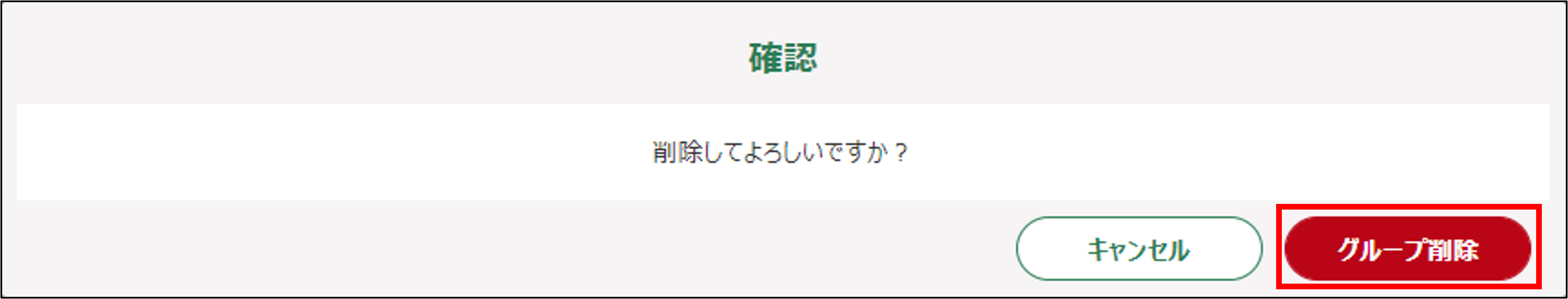 4.削除対象のグループであるか確認し、「グループ削除」ボタンをクリックします。