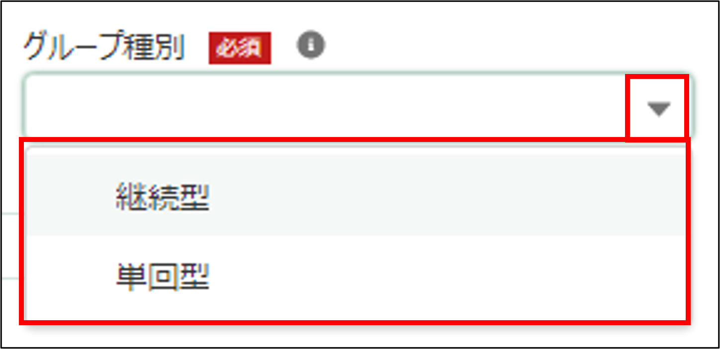 入力欄をクリックし、表示された一覧から該当するグループ種別を選択します。