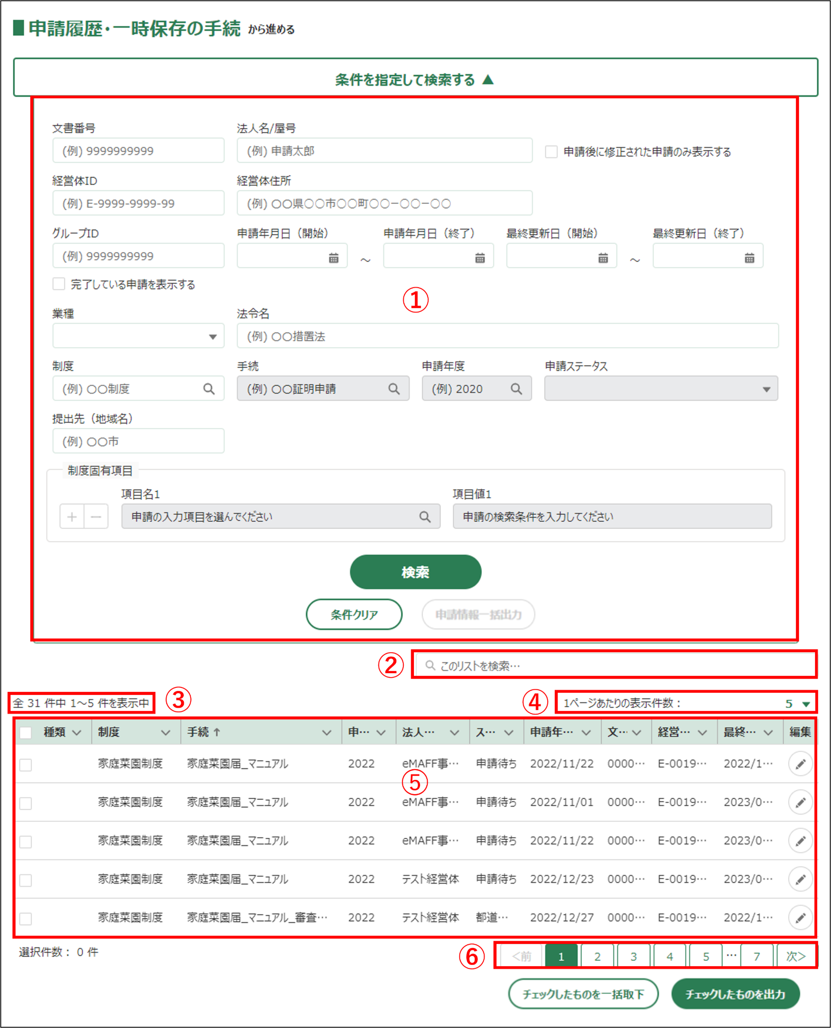 1ページに表示する項目の件数です。表示件数の変更もできます。 操作詳細→1ページ当たりの表示件数の変更 |