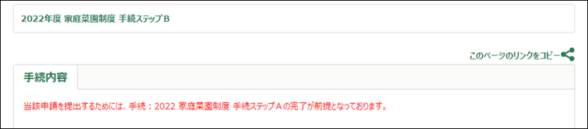 例:共通申請サービスで「手続ステップA」が未申請の状態で、「手続ステップB」の申請画面を表示した場合