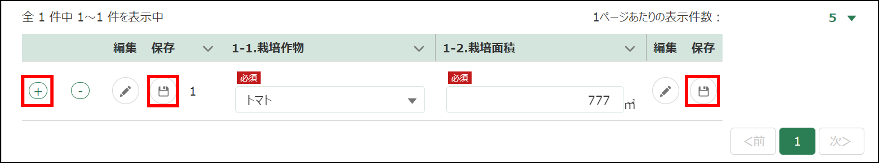 一行入力が完了するごとに「」ボタンをクリックして保存してください。行を追加する場合は、左の「+」ボタンをクリックします。