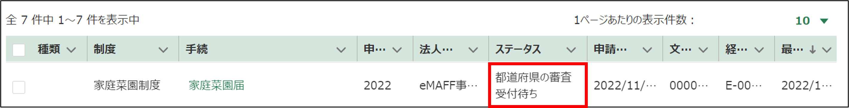 申請直後は、ステータスが「~受付待ち」と表示されます。