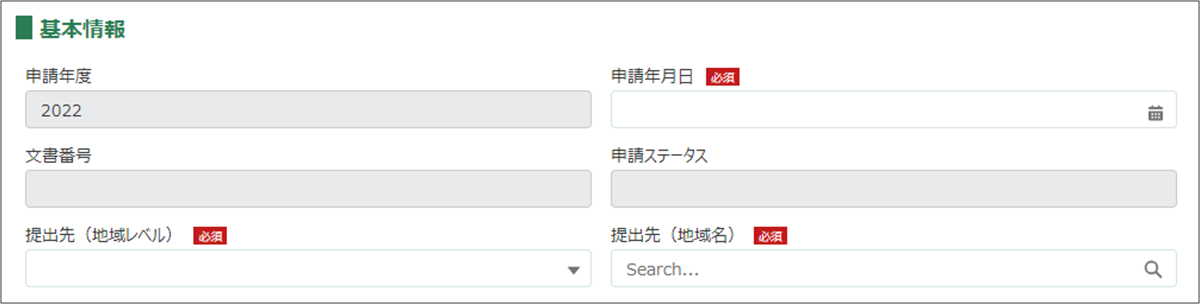 続いて、申請内容の入力を行う方法については「申請内容を入力する」の(3)をご参照ください。