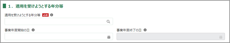 2.「1.適用を受けようとする年分等」について、各項目を入力します。
