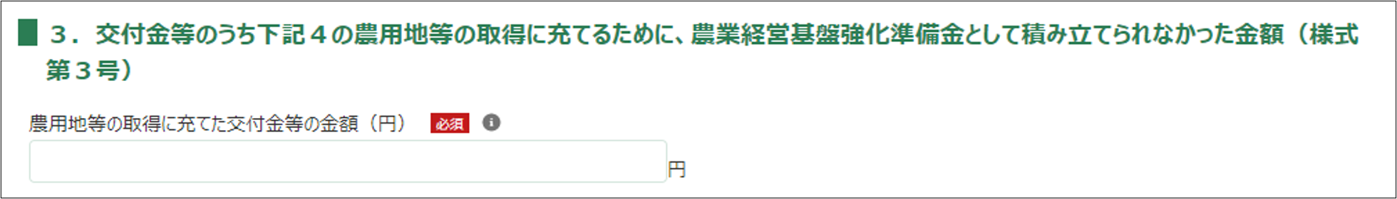 4.「3.交付金等のうち下記4の農用地等の取得に充てるために、農業経営基盤強化準備金として積み立てられなかった金額(様式第3号)」を入力します。