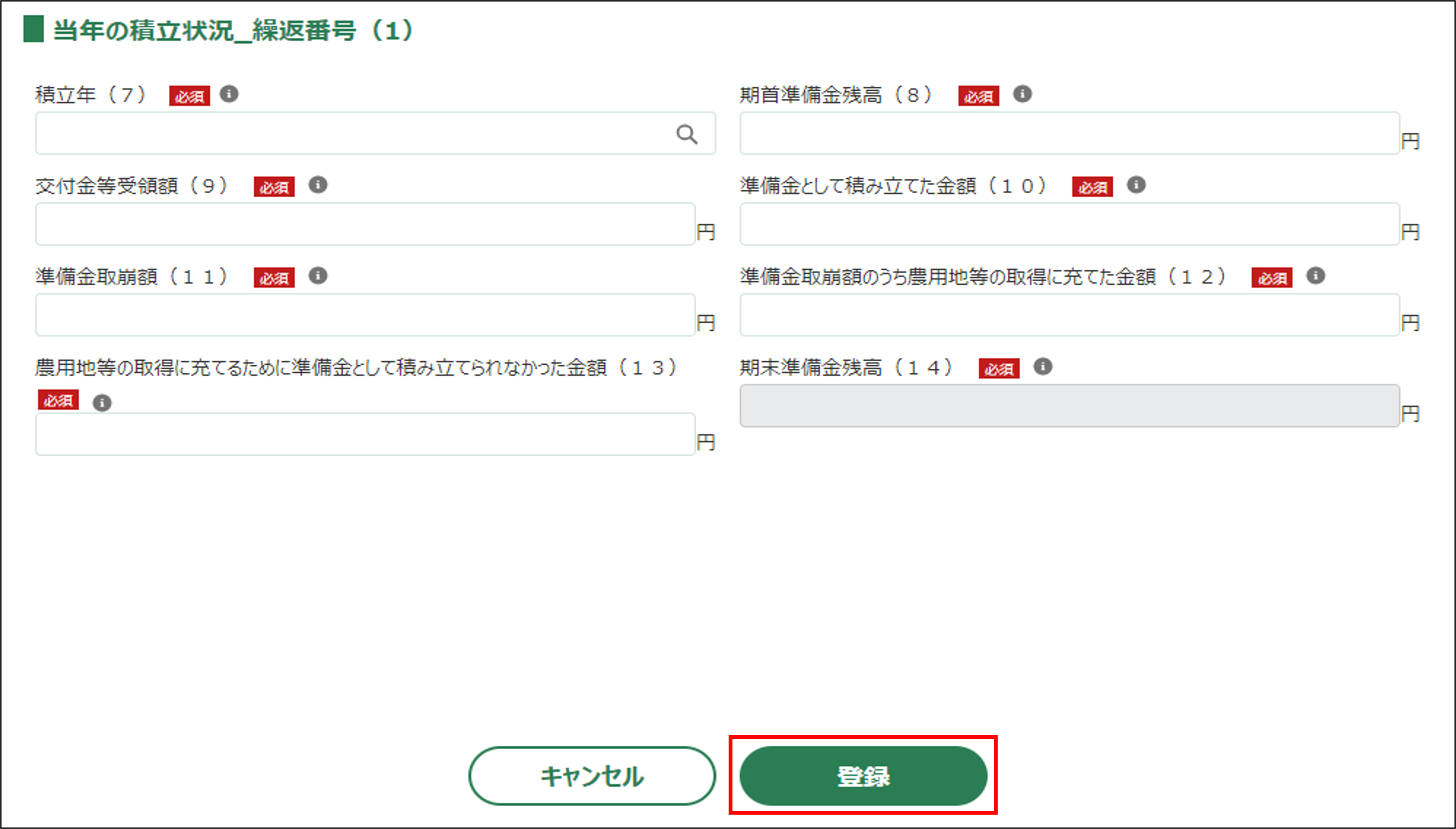 | 期末準備金残高(14) | 入力された金額から期末準備金残高が自動で表示されます。 |