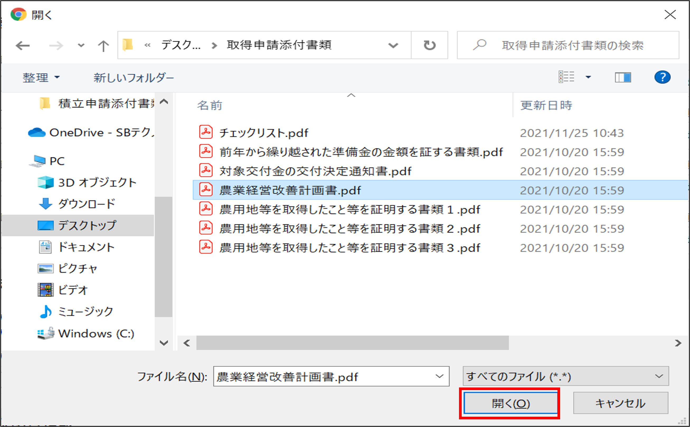 同様に提出するファイルを添付します。