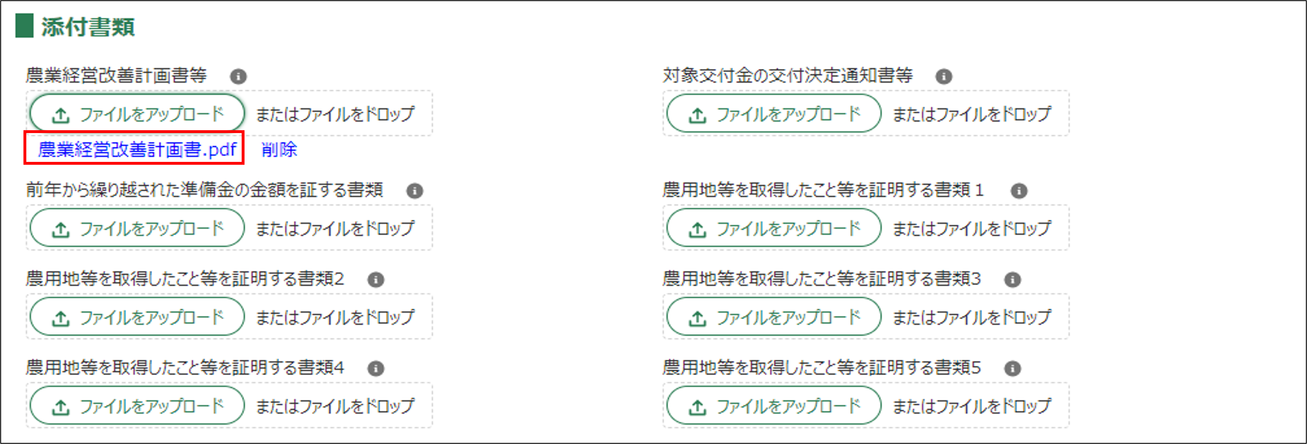 農用地等の取得計画の情報が登録されます。