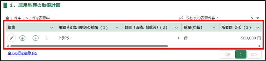 8.「1.農用地等の取得計画」を入力します。